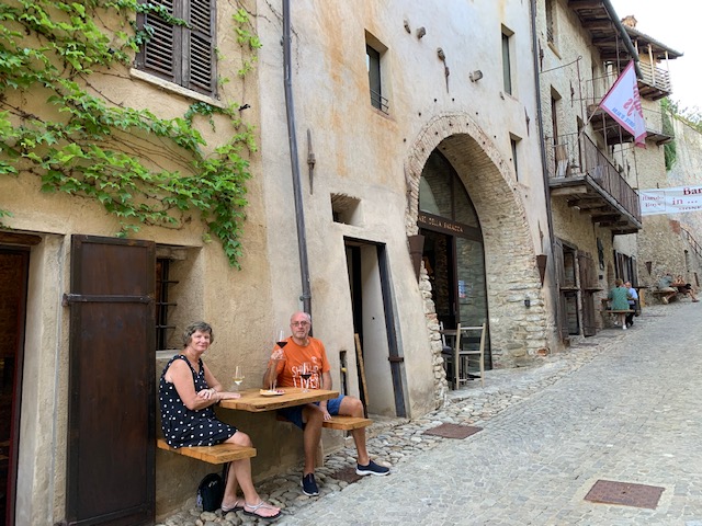 We took Jude for an aperitif to the top of the village to Le Case della Saracca, which we had frequently visited on our last 2 visits. It is our favourite watering hole of the village. I think Jude thought the walk up was ok once we got there.