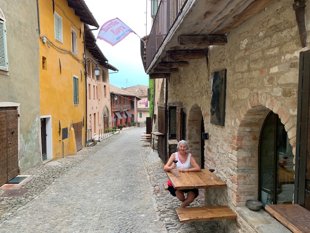 We then arrived at our favourite little village of Monforte d”Alba in Piedmonte, where we have stayed twice before. We were very excited to show Jude the village. We were warmly welcomed by Elena. We knew Covid had hit the village hard and Elena had told us that a few places had closed but we were pleasantly surprised to see that there were some new restaurants, some older buildings renovated and the vibe was still there.