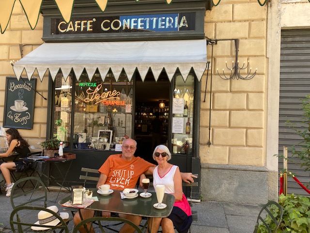 Rhonda dragged Greg and Jude to the Cafe Bicherin so she could have her traditional Torino drink. A combination of coffee and chocolate with cream on the top. Rather decadent but when in Torino….The first bicherin was made in the cafe and the place dates back to 1763.