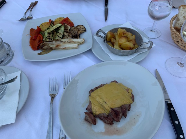 Having said that, we thought we needed to carry on, so went out for another dinner at La Poste for another round of agnolotti del plin. Entrees were veal tartare and baked onion with sausage and goats cheese! Lyndsay…..the pannacotta still not up to Andres standard!
