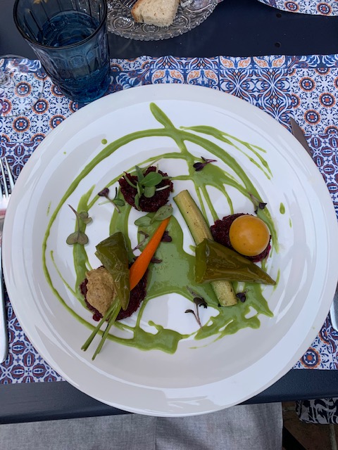 We had a great dinner at Osteria dei Catari in the village. The raviolini del plin with butter and sage sauce was delicious and Greg’s rather strange “Roasted beetroot tartare with peas and fake egg yolk” was, according to Greg wonderful!