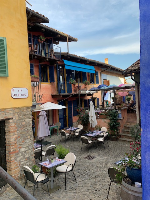 We then arrived at our favourite little village of Monforte d”Alba in Piedmonte, where we have stayed twice before. We were very excited to show Jude the village. We were warmly welcomed by Elena. We knew Covid had hit the village hard and Elena had told us that a few places had closed but we were pleasantly surprised to see that there were some new restaurants, some older buildings renovated and the vibe was still there.