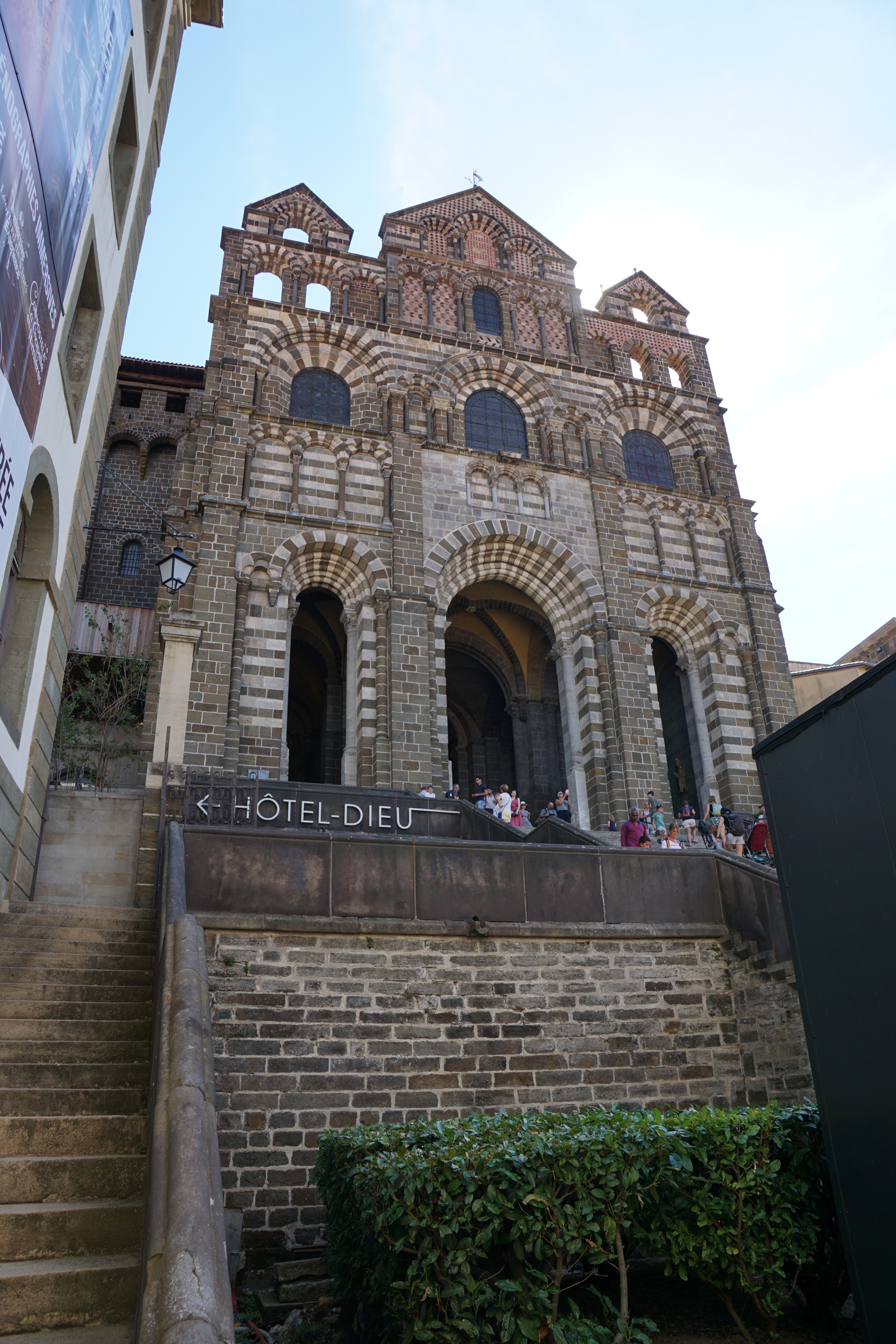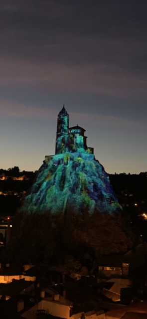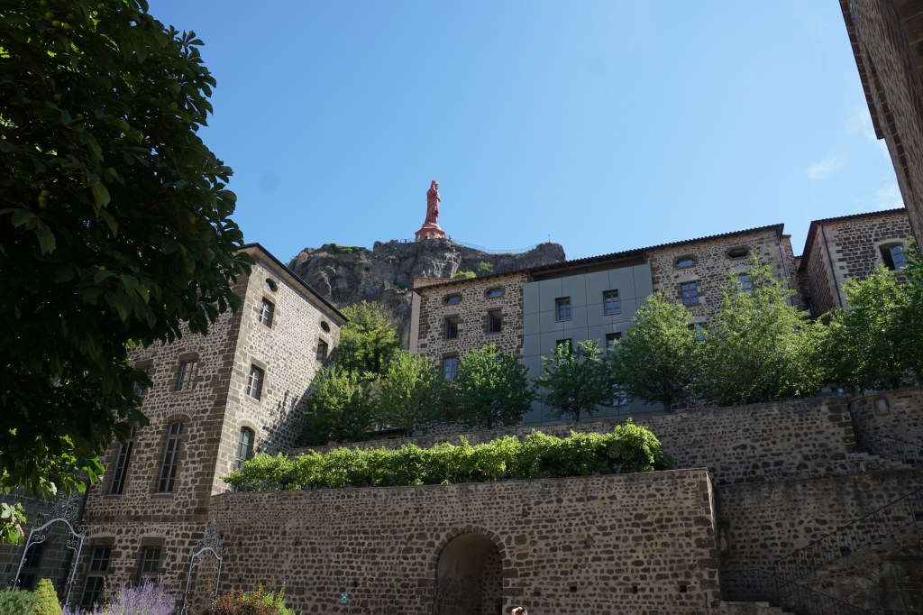 Aiguilhe, The Rock and the Chapel of St Michael is one of the most spectacular attractions of the town. In 950 , a bishop of Puy led the first French Pilgrimage to Santiago Compostello and on his return a chapel dedicated to St Michael was built on the Rock (A volcano!) You can climb up the 268 steps carved into the rock to reach the chapel but we opted for a view down the bottom….for obvious reasons!