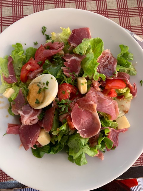 We had to rest at some stage for lunch which we had in the Place de Plot, The Salad and omelette with the carafe of rose gave us some energy to continue our walking.