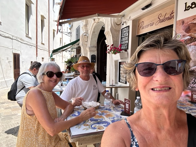 Our next port of call was Gallipoli, no not the one in Turkey.We wandered the Centro Storico , situated on a limestone island. The Castle Angevin stands at the entrance to the island and was the fortress built to protect the island when the Venetians took hold. We saw the Cathedral of Saint Agatha, but we are almost over churches so sat and admired the outside while having a drink. The beaches around Gallipoli looked quite inviting but no time to swim. We enjoyed a nice lunch in the back streets.