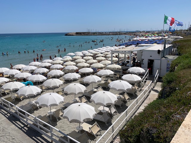 We spent a day driving down the Adriatic Coast . First stop was the beach resort of San Cataldo, the local beach for those who live in Lecce. It was a nice sandy beach and full of people swimming. We went further along to Torre dell’Orso, which a rocky coastline.
