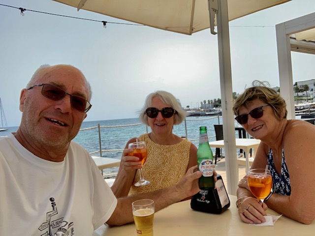 We continued down the coast to the tip of Italy, the heel of the boot, to Santa Maria di Leuca where the Mediterranean meets the Adriatic Sea. Of course to celebrate , we stopped for a drink!