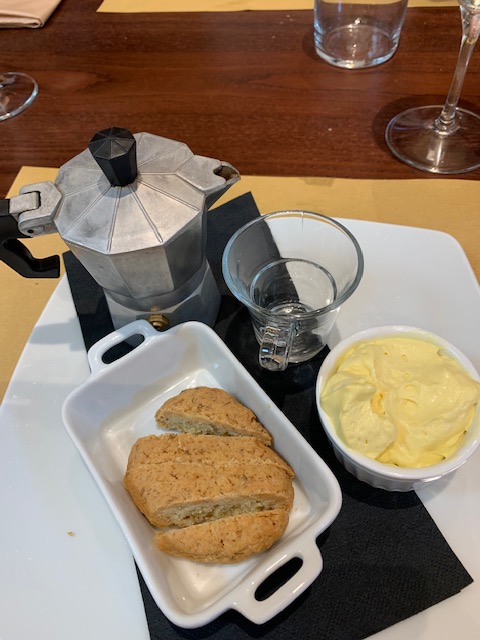 WE asked our host for a recommendation for a winery lunch, and we weren’t disappointed. we went to Alturis Winery and tasted some of the famous white wine of the region. Our lunch was delicious. The charcuterie starter was great as was Greg’s vegetable parmigano, and Rhonda’s agnolotti pasta with lemon butter, poppy seeds and speck. We decided that dolce was in order and Rhonda’s “birramisu was certainly different, a deconstructed tiramisu but made with dark beer instead of the usual liqueur.
