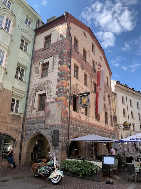 The following day it was time to say goodbye to Stew and Lynds. We loved having them with us and showing them some rural life in Austria. We took them to the train station in Innsbruck, so we decided to spend a few hours wandering the Old Town, We found the “Goldenes Dachl”, the Golden Roof, which was a Gothic oriel built in 1420 and decorated with 2657 fire gilt copper tiles.