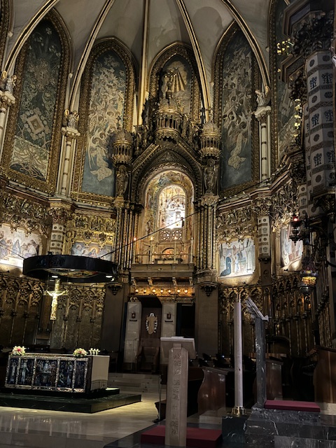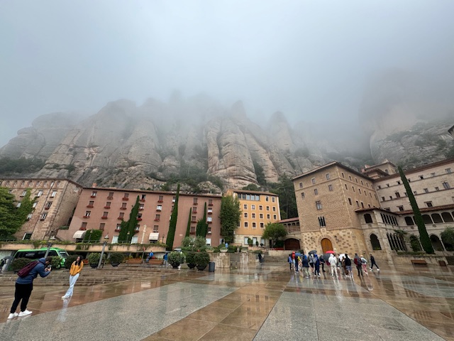 Then it was into Barney for our trip to Barcelona. along with the rain! We stopped at the Monserrat Abby. It was founded in 1025 and rebuilt between the 19th and 20th Century. It’s location, built on the side of Monserrat Mountain gives you spectacular views….unless it’s raining and cloudy…which unfortunately it was for us.