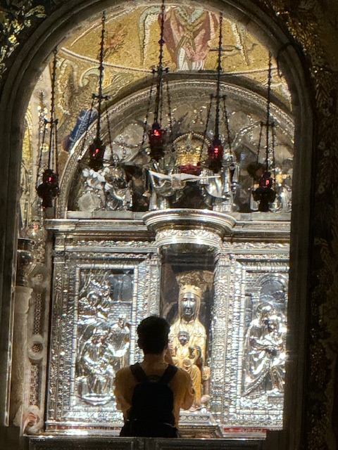 We went up to the Monastery in a cable car which was a bit of fun. We went inside the Basilica because Rhonda particulay wanted to see the Black Madonna. According to legend , in the 9th Century an image of the Virgin was found in a cave by shepherds. She was named La Moreneta due to her dark skin and she became the patroness of Catalonia.