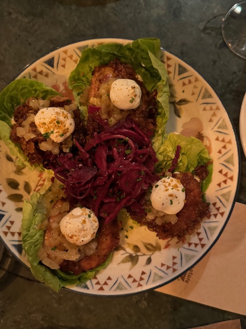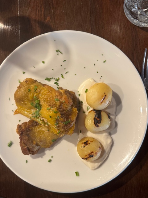 We went out for dinner in the pouring rain the first night but had a great meal. The white and green asparagus was delicious as was the calamari, the obligatory potatas bravos and the fried chicken . We then finished with a creme catalan. Yum.