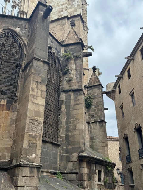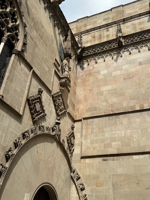The Pont del Bisbe or Bishop’s Bridge is not as old as it looks, it was actually constructed in the 1920’s but thought it was worth a photo. The Barcelona Cathedral began as a Gothic Church completed in 1488 but its appearance has changed over the Centuries. Our guide told us it is not worth the 14 euro entry fee so we didn’t enter but we did like the gargoyles on the outside, particularly the unicorn.
