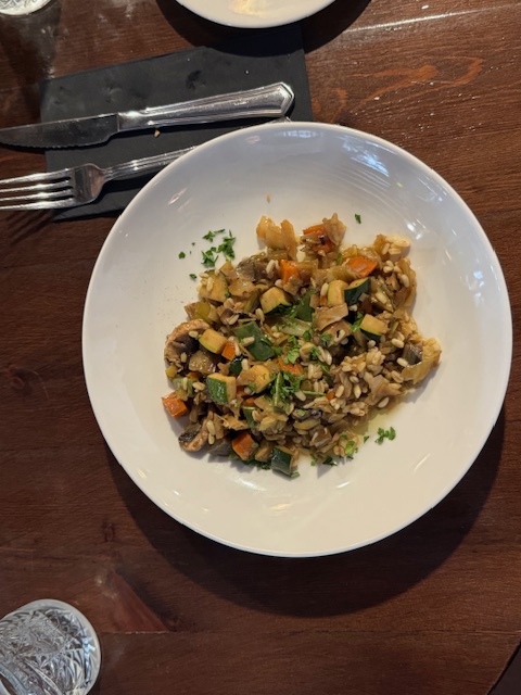 Then it was lunch time so we went to a great little rustic bar for their “Meal of the Day”. 18euros per person gave us a 3 course banquet!. The wok veges, cofit chicken, pasta, fish and apple pie. All were delicious!