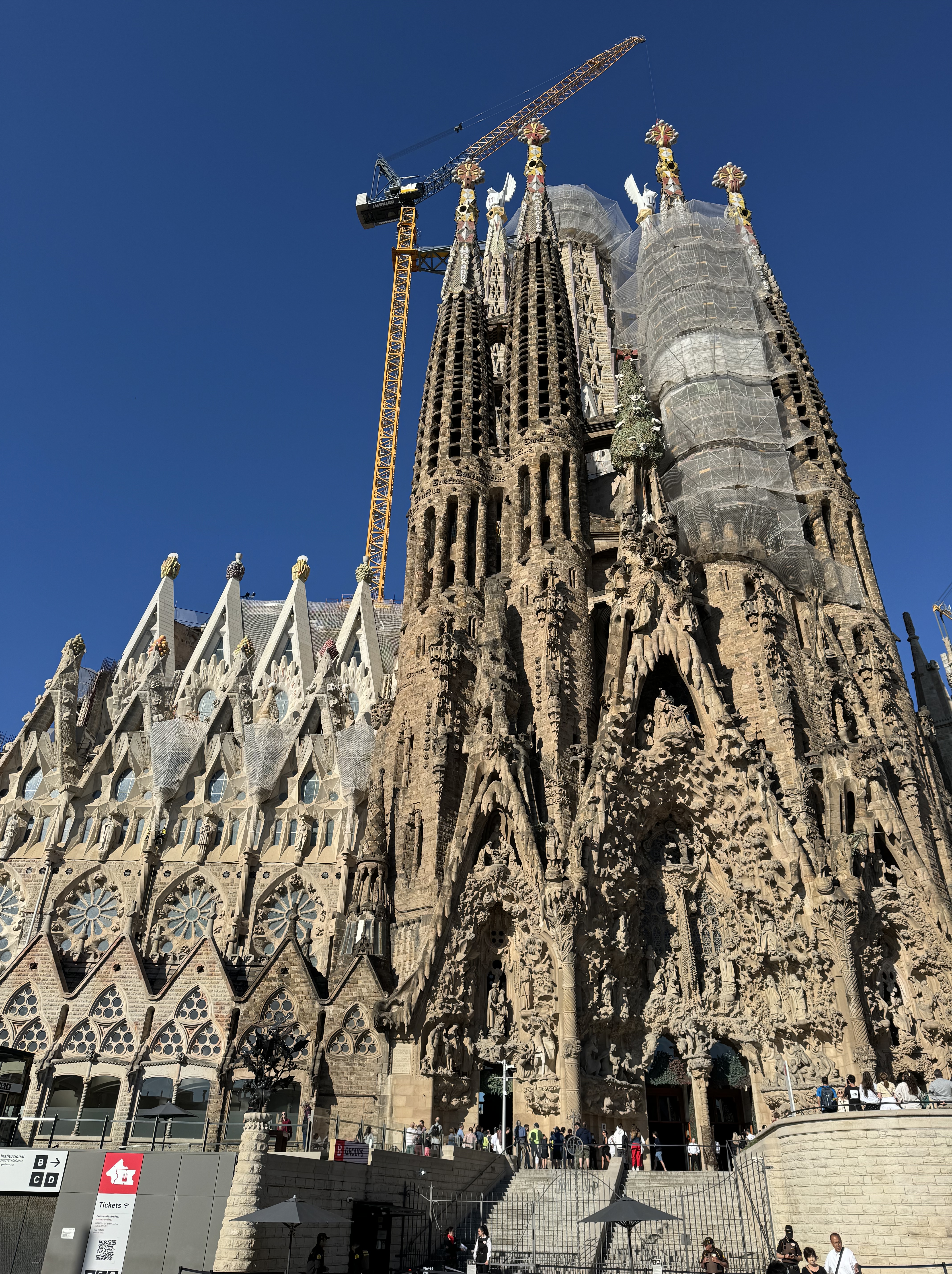 It was begun in 1882 and is still unfinished. A “brief history”….In 1883 Gaudi took over as the chief architect of a project that was initiated the year before. He dedicated his life to it until his death in 1926 at the age of 73, sadly being hit by a tram!!!! At the time of his death less than one quarter of the Basilica had been constructed and the work slowed down due to lack of funds and the Spanish Civil War. He did however leave extensive plans and models as he knew it would never be finished in his lifetime.