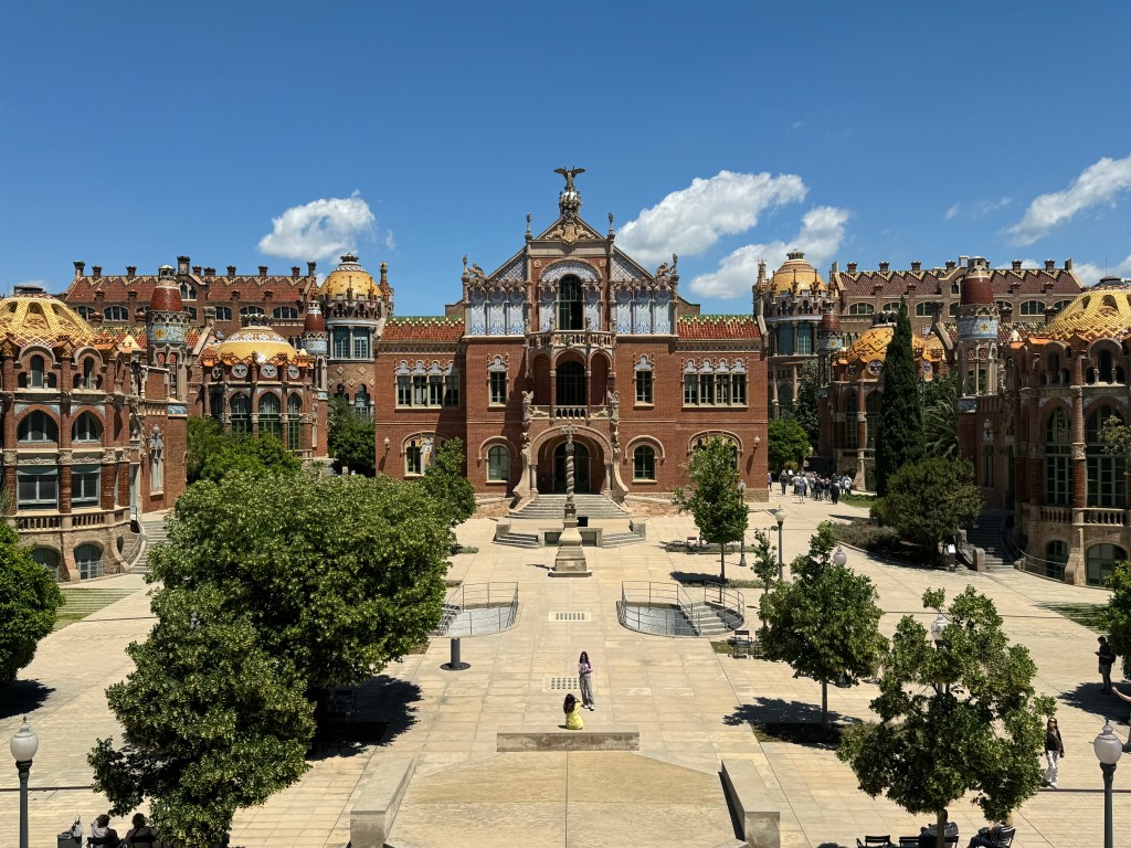 We needed to rest and hydrate and pause for spiritual reflection ( no we just needed to sit and have a drink) after our visit and then made our way to the Hospital St Pau, not because were ill but because it is a UNESCO listed site known as “The Old Hospital”