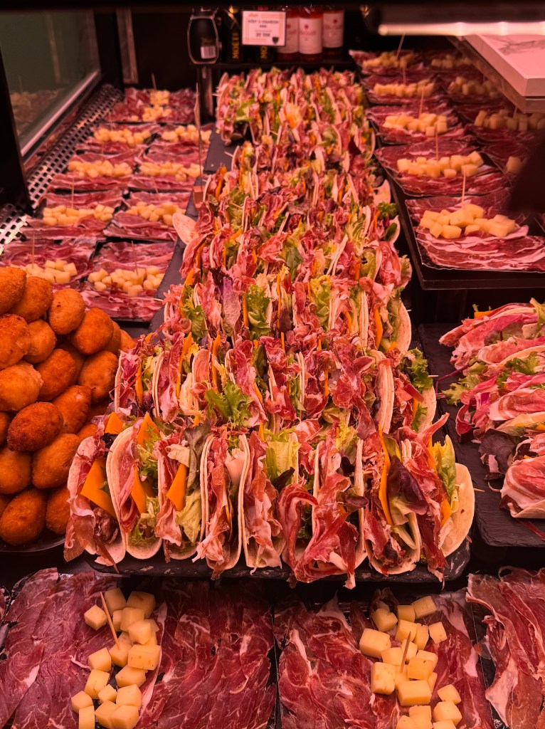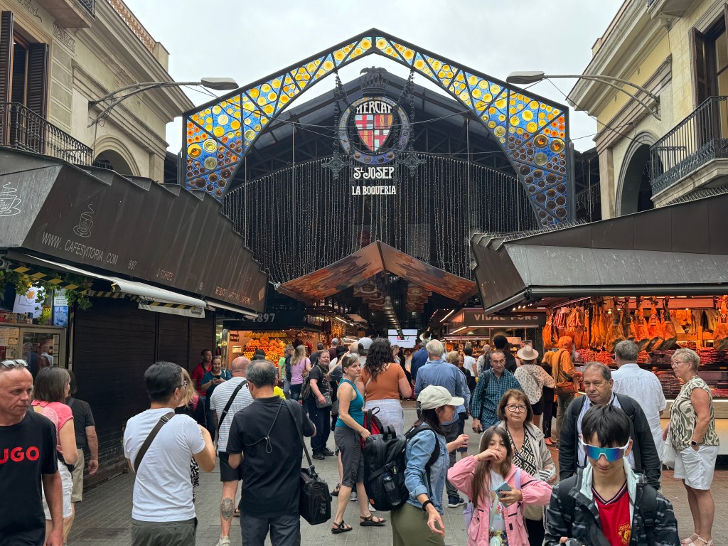 Our first stop of the day was the very colourful La Boqueria Mercato in The Ramblas. It has been a market since 1836. It was fun wandering and seeing all the different stalls of juices, meats, fish and an array of any type of food you could wish for.