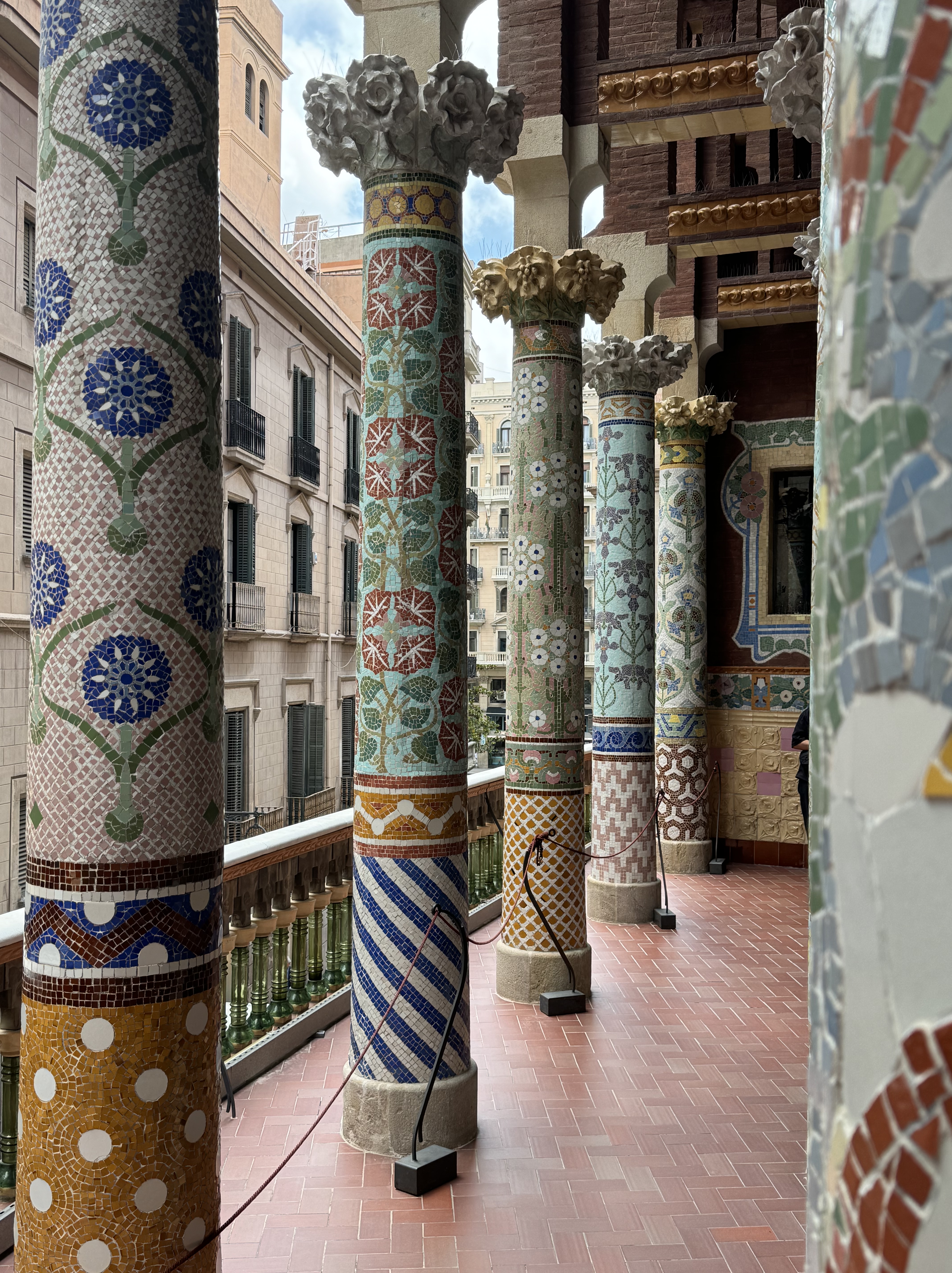 The pillars on the balcony are all decorated differently with mosaic patterns of roses and other flowers. It was absolutely stunning. We loved it.