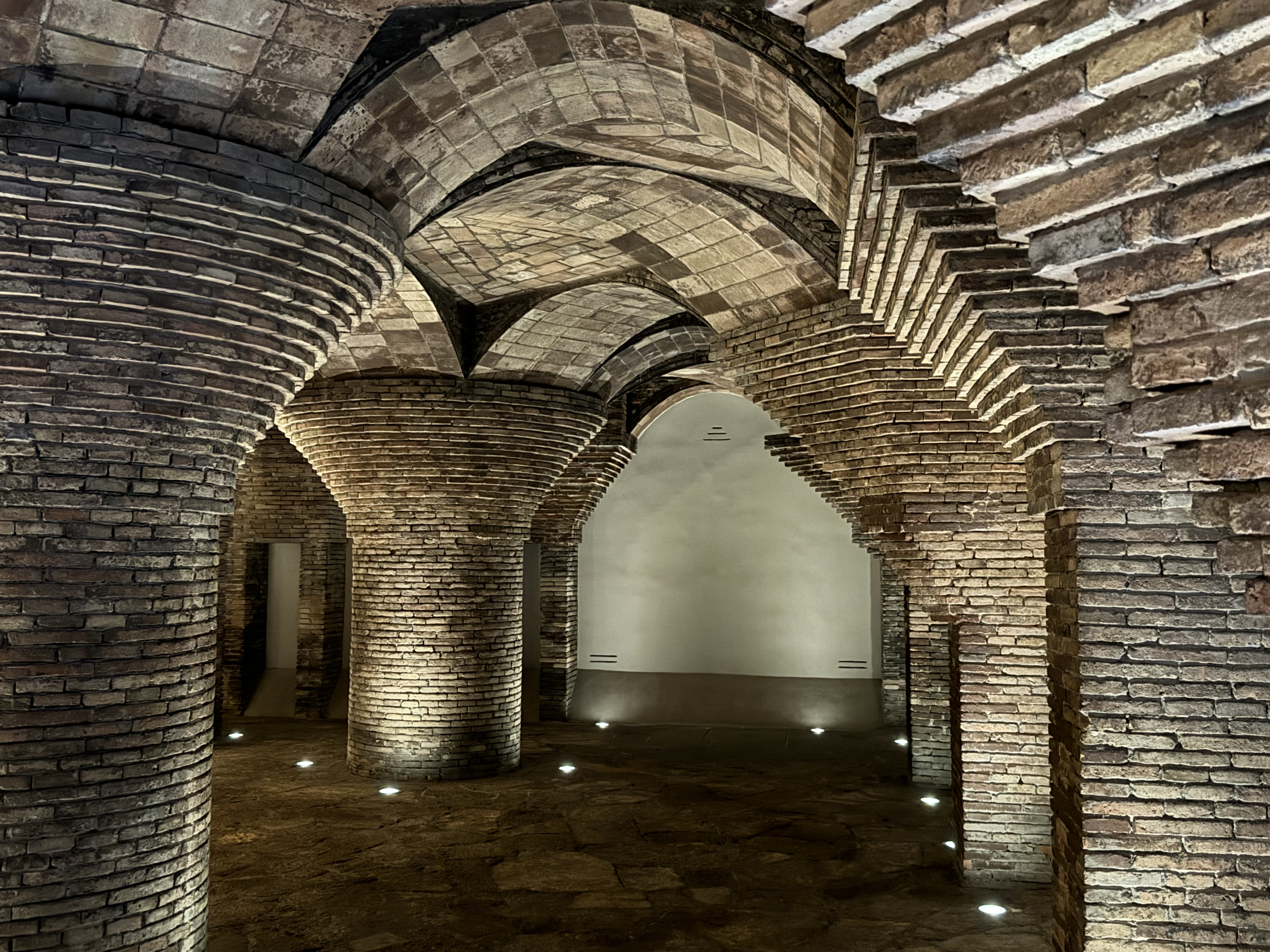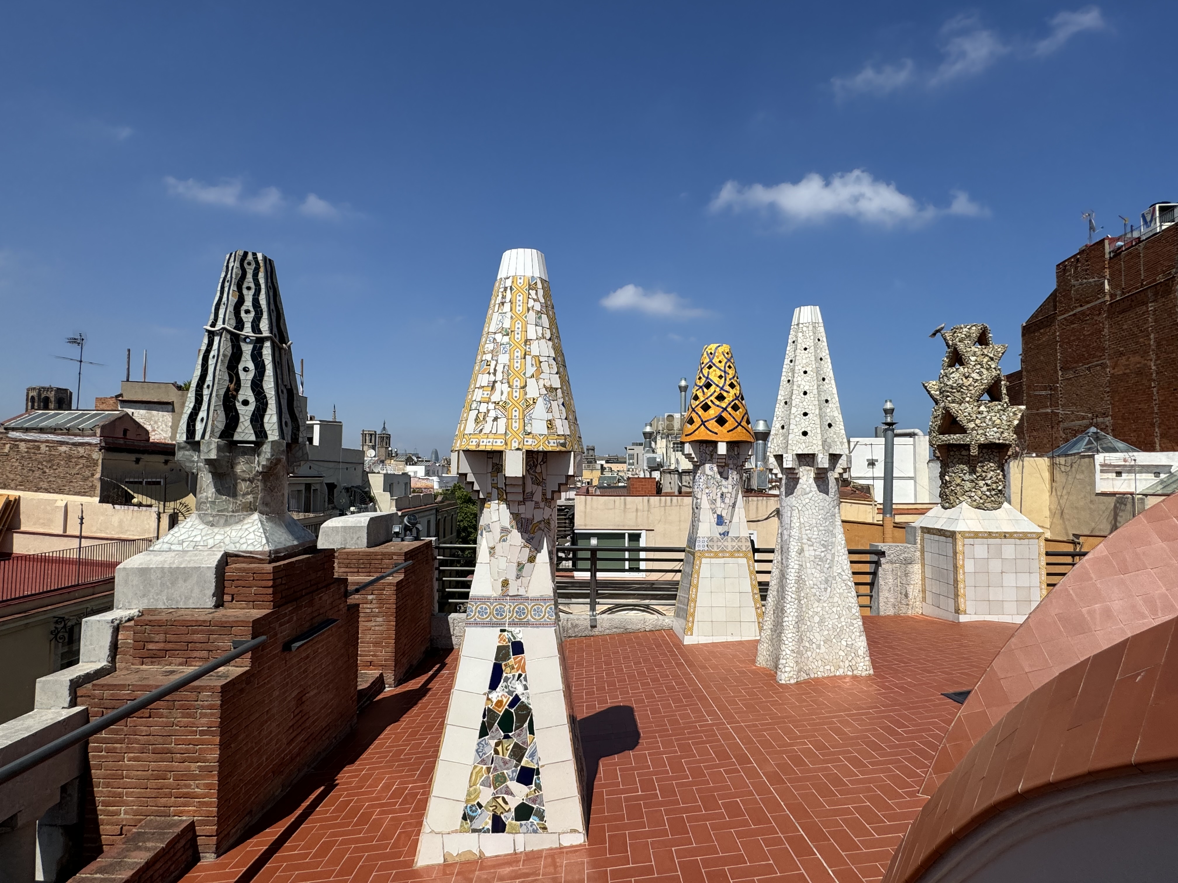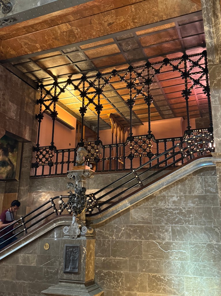 Our 2nd last Gaudi stop was Palau Guell, a mansion designed by Gaudi for an Industrial tycoon and built between 1886 and 1888, another UNESCO listed site. The stables in the basement had a great ceiling. There is an ornate staircase leading to lavishly decorated rooms over 3 floors.
