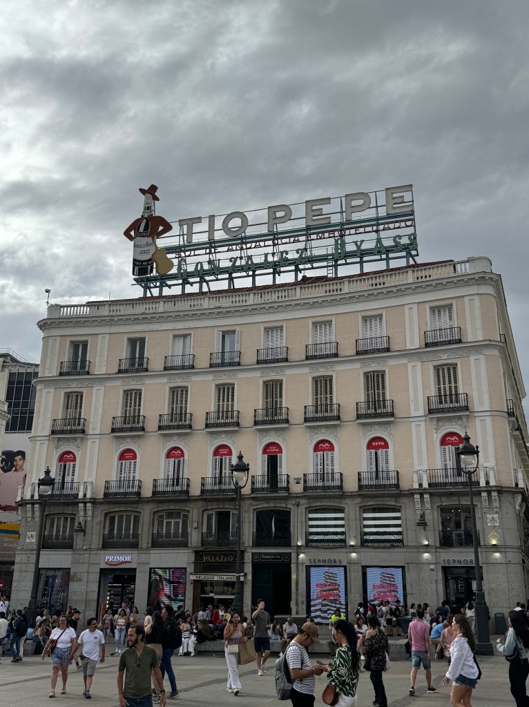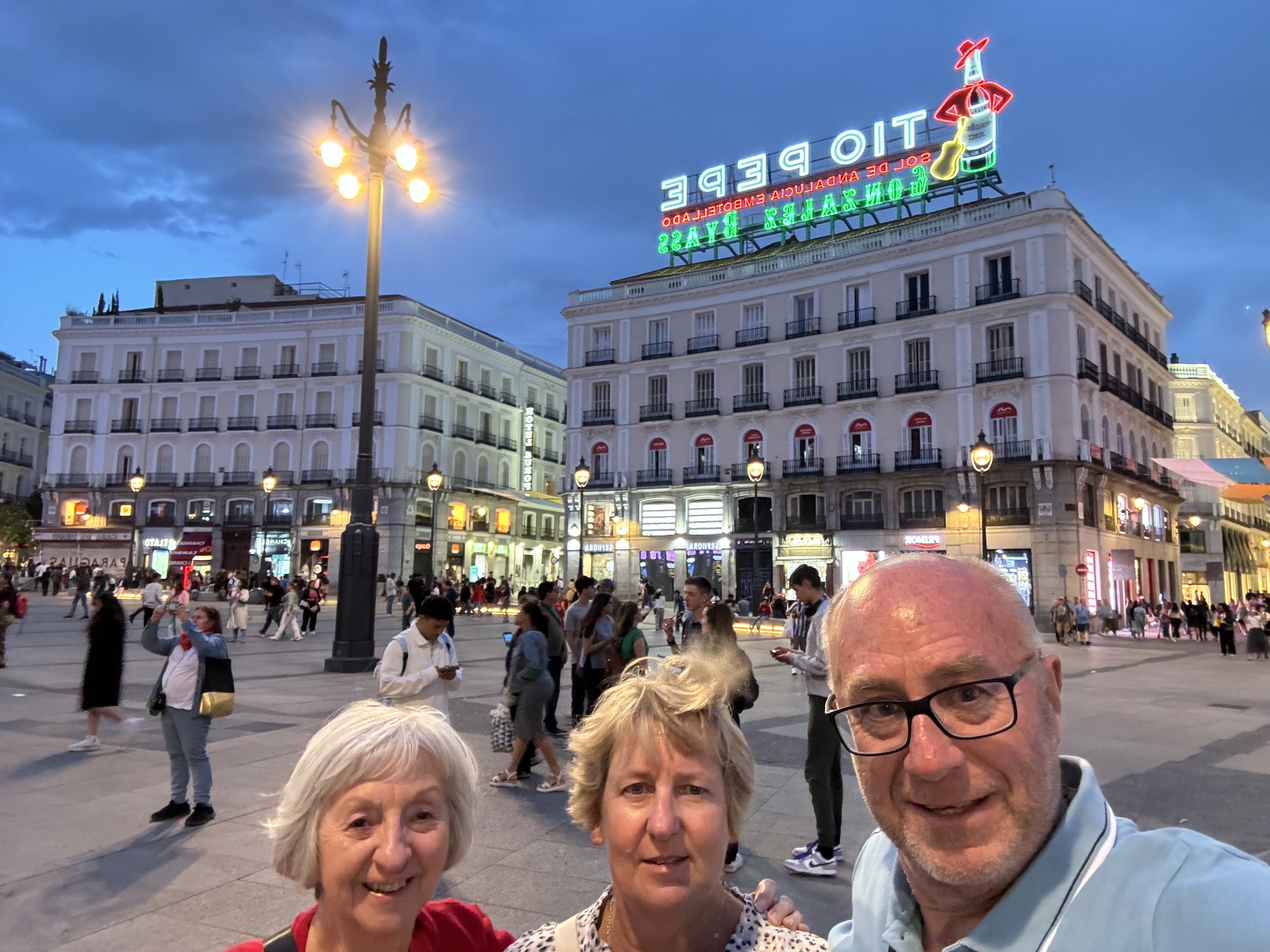 We had read about the famous Iconic statue in the plaza, which is the symbol of the city, “The Bear and the Strawbery Tree”, with the bear symbolising the fertile soil of Madrid and the strawberry tree symbolising the aritocracy! ????? Well, we were expecting it to be quite larger than it actually was, even had to ask locals where in the Plaza it was situated, but here is a photo. The Tio Pepe is an iconic neon sign in the Plaza advertising a local Spanish sherry. Julie did try one but was not impressed so we decided to trust her and did not imbibe.