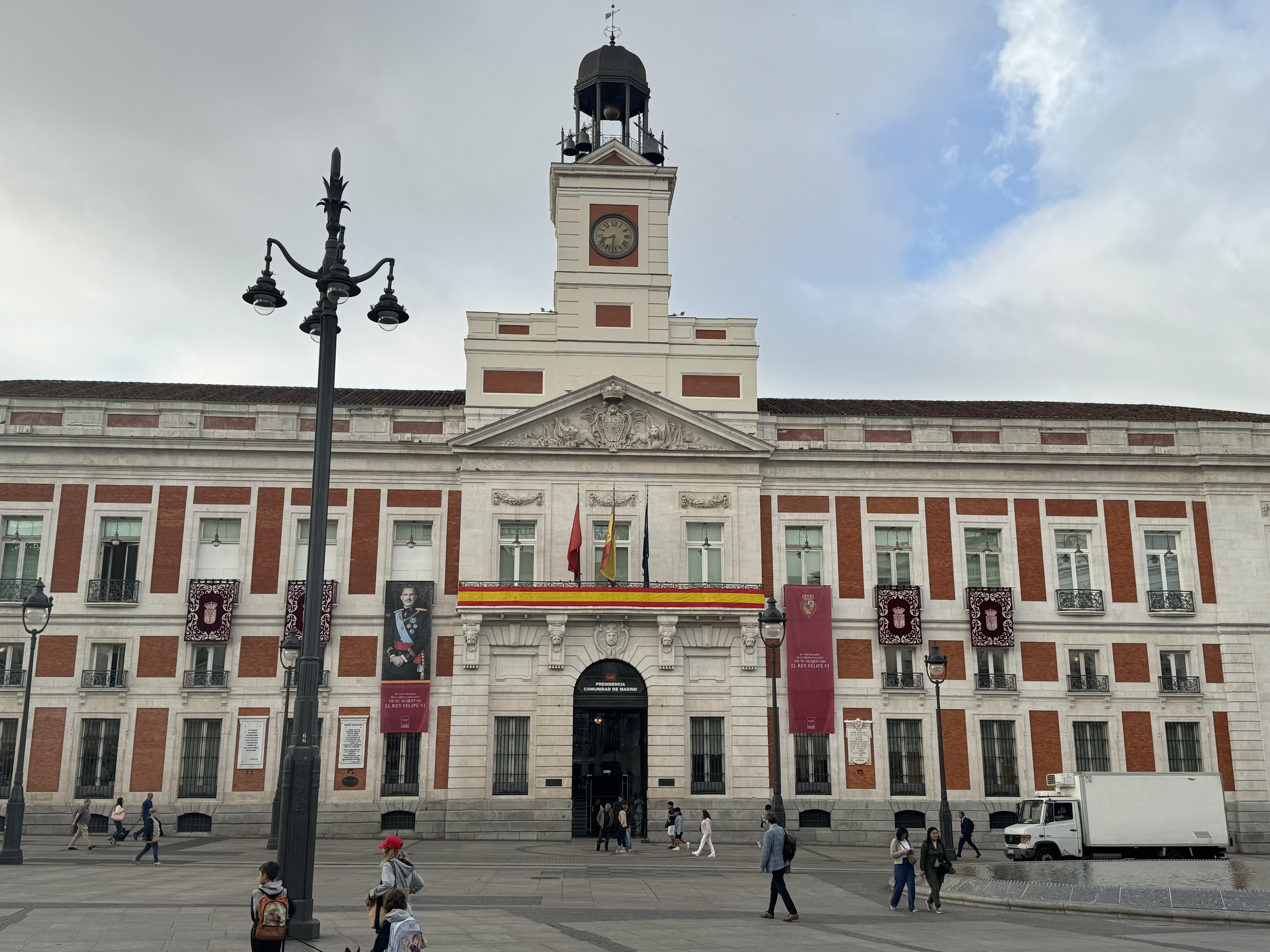 We then headed up to Puerta del Sol (Gate of the Sun) another huge Plaza and known as one of the busiest places in Madrid and we agree! The Casa de Correos is the Headquarters of the Madrid Regional Government and apparently each NYE as the clock on the top chimes 12 times it is traditional to eat a grape at each chime, slightly weird we thought! Spains klm zero is also in front of the building which is the starting point for all major roads in Spain.