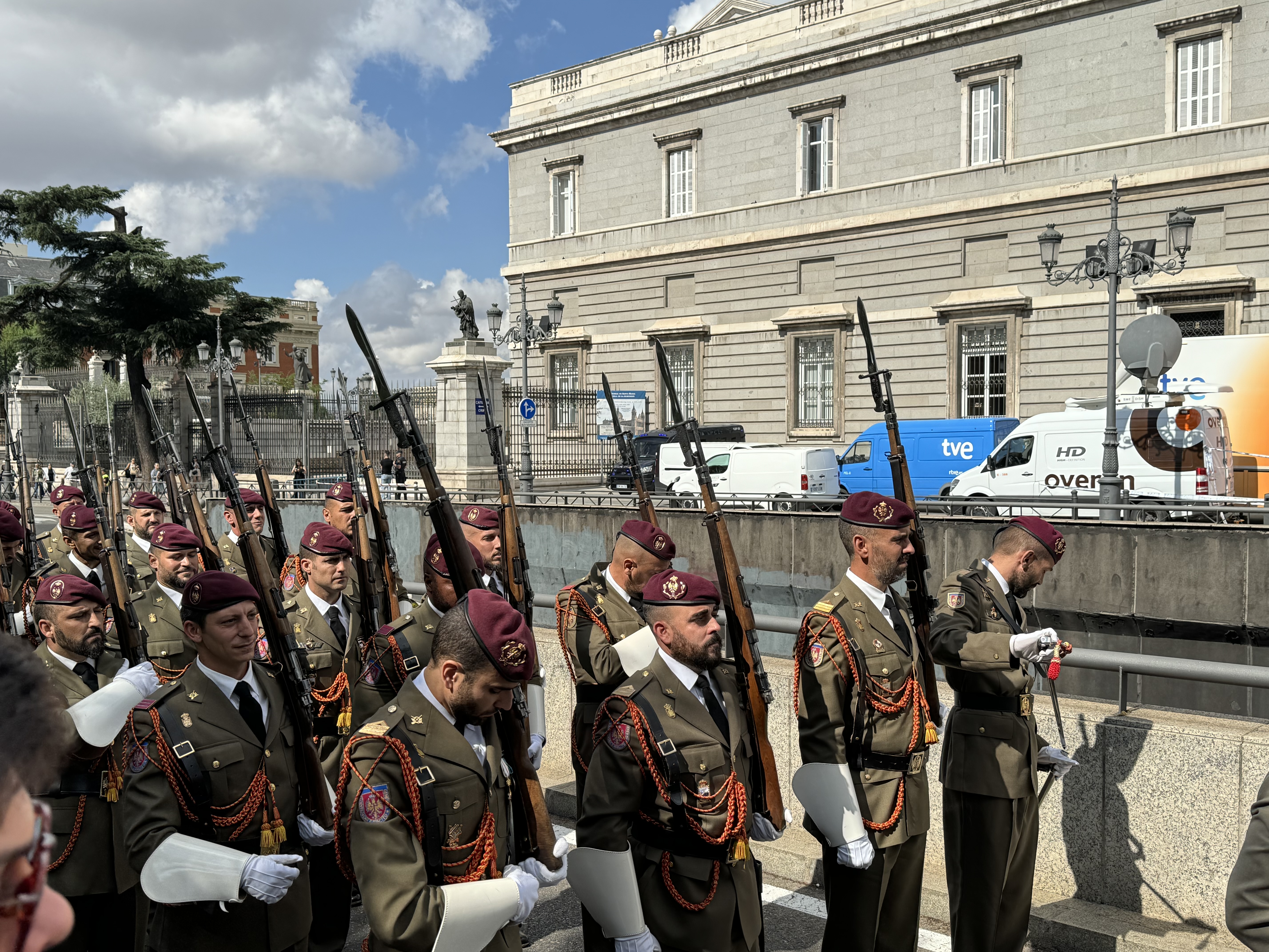Then it was time for our walking tour of Madrid. When we arrived at our meeting point, we realised something was going on, there were heaps of people heaps of police and security cameras everywhere. Our guide told us it was 10th Anniversary of the Coronation of King Felipe of Spain and a parade was going to happen. We moved on as our guide told us some details of the Palacio Real de Madrid (Royal Palace). The Royal family does not live there but it is used for State Functions. The present Palace was built between 1738 and 1764 after an “apparent accidental fire”, because the new tenants did not like it! It is said to be the largest palace in Europe with 3418 rooms.