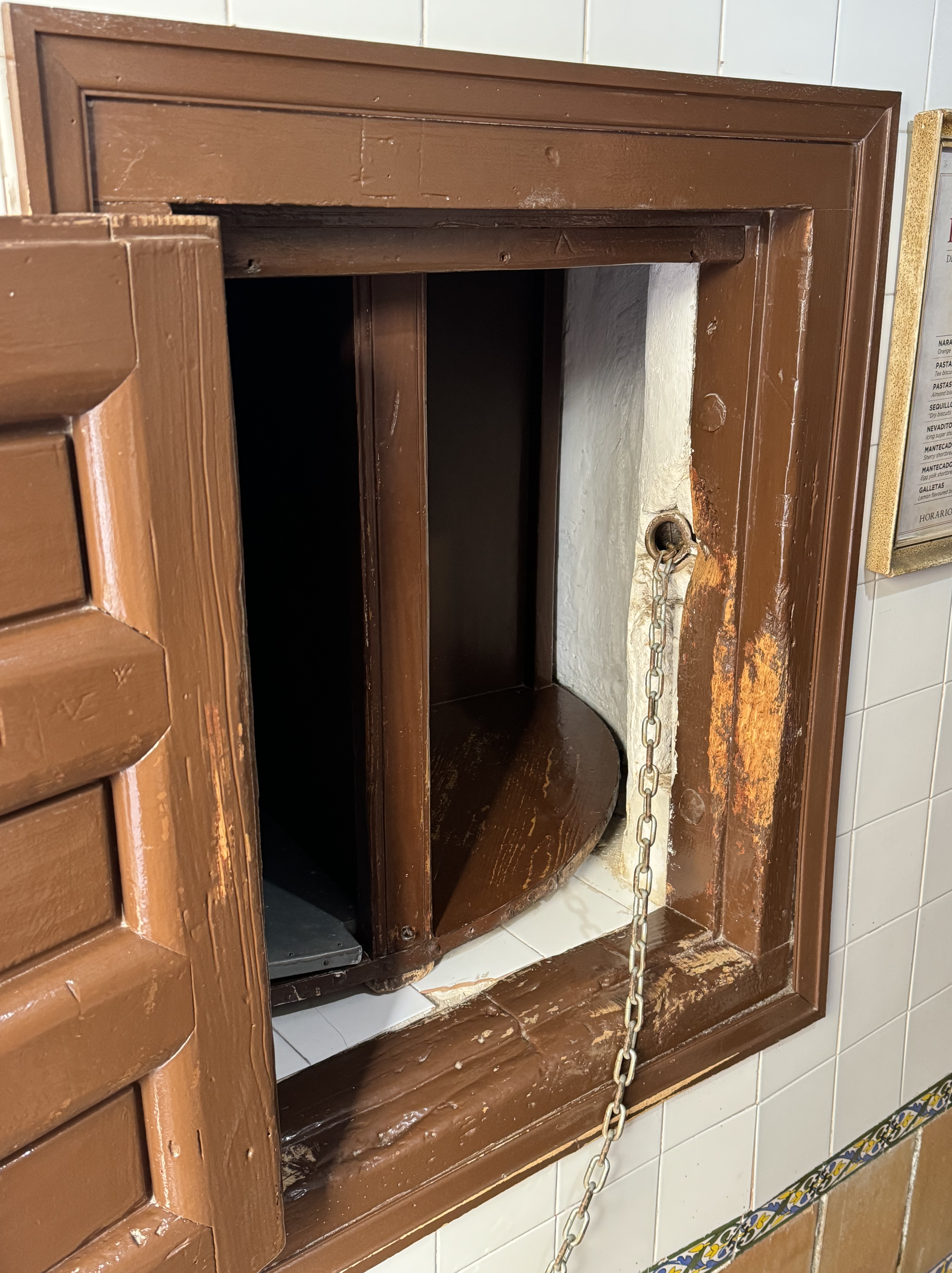 Julie had googled a place near the plaza where you could buy “cookies from the secret nuns” world, so when in Madrid! Our guide took us to a very non descript door, we entered, and came to a menu with a “lazy Susan” type thing. You order your kg or 1/2 kg of cookies, put your money down, and voila your cookies and change comes around back to you! You are unable to see the Nuns as they are “cloistered nuns” and do not have contact with the outside world. It was a bit of touristic fun and the cookies weren’t too bad!