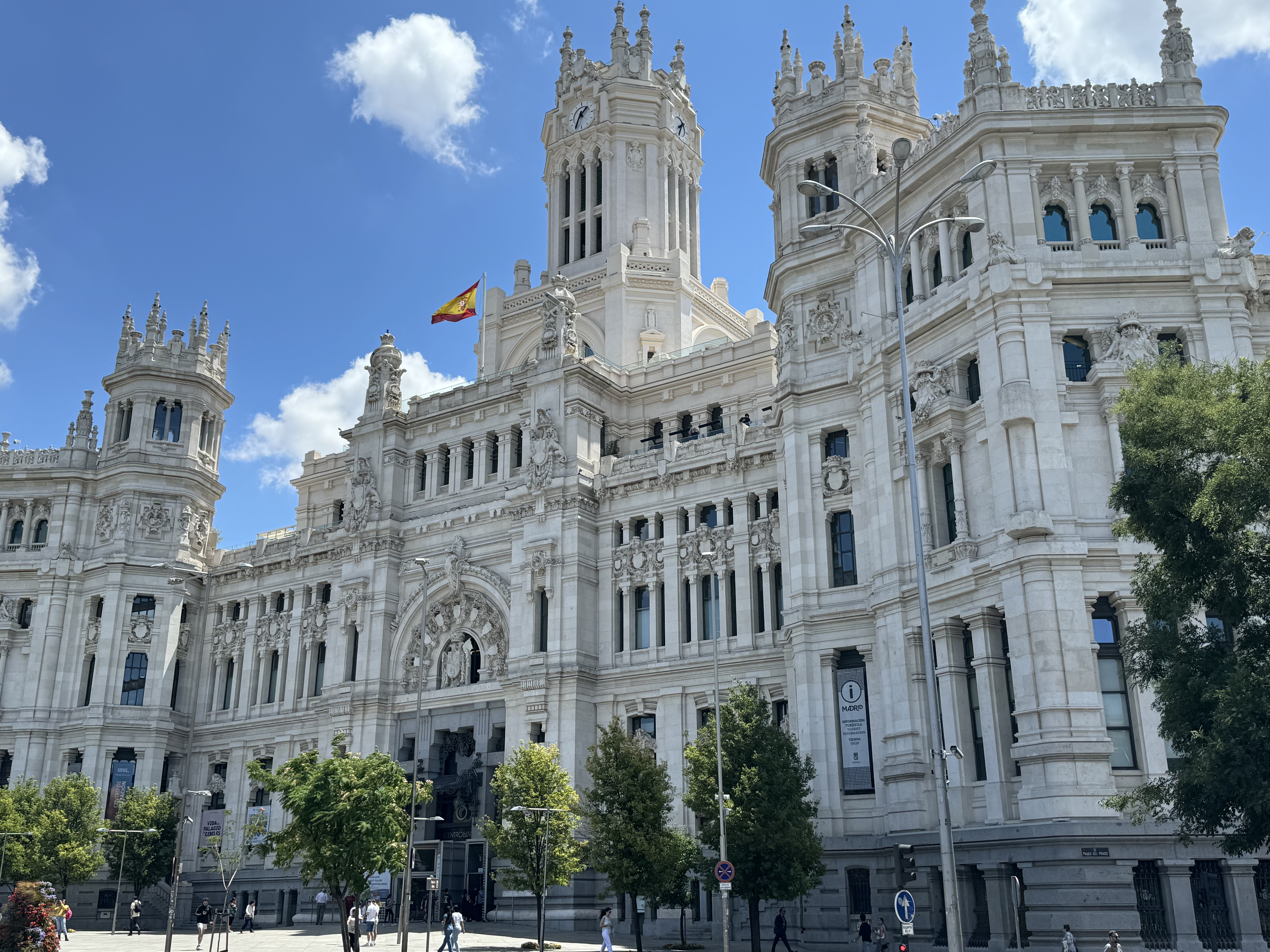We had a few drinks and lunch along the way to our next stop, Plaza Cibeles and Cibeles Palace. This a relative newcomer, it was built in 1919 as the Spanish Post Office Headquarters, a bit flash we thought for a PO now it is the Madrid Town Hall and it is pretty stunning.