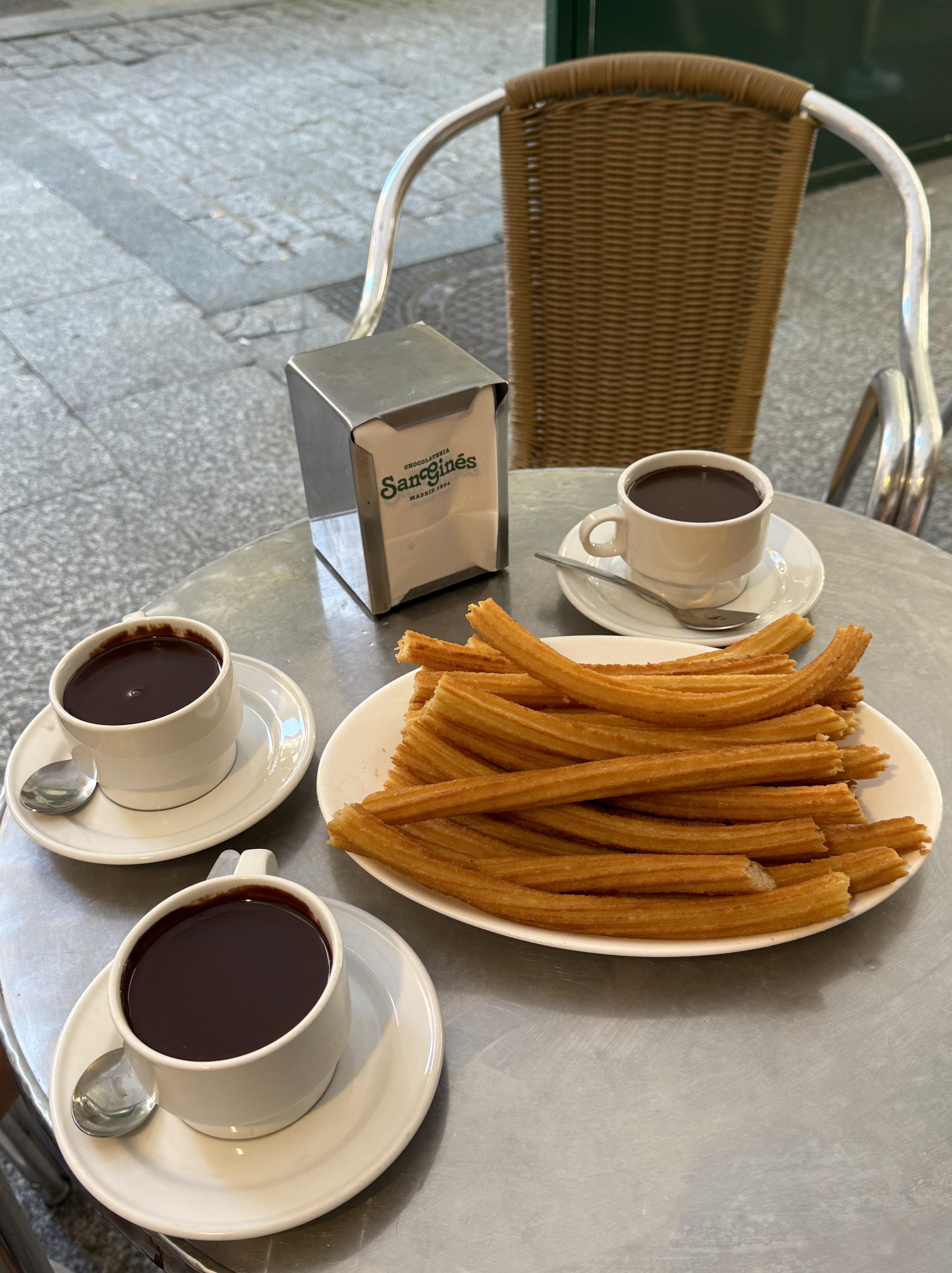 Lunch was at Chocolateria San Gines. an institution in Madrid since 1894 and serves the famous chocolate con churros. Boy what a lunch it was!