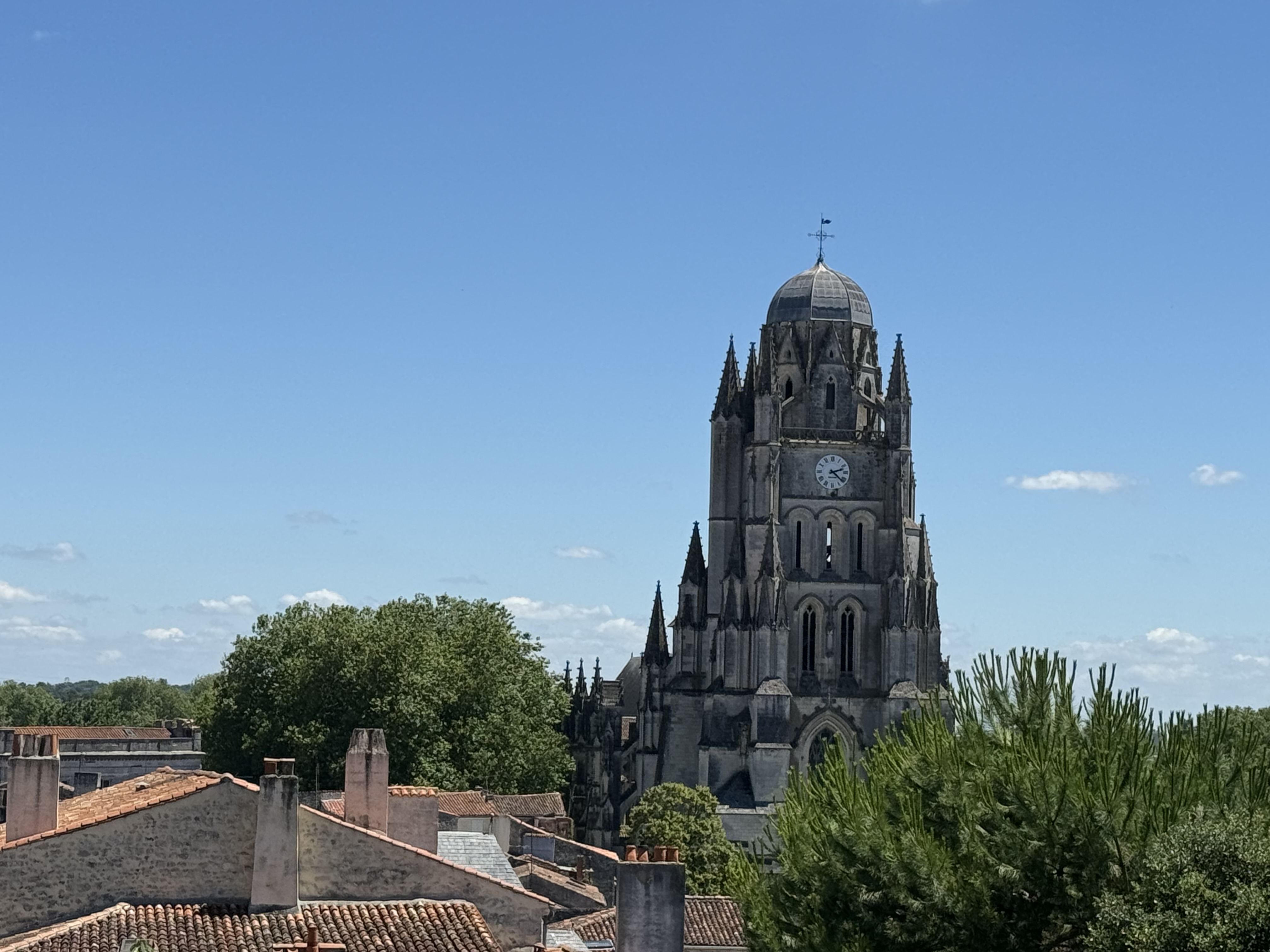 Now we are flying solo, just the 2 of us. We left San Sebastian to head back into France for our 3 night stop in La Rochelle. We needed a stop for lunch, so popped into the town of Saintes, an historic town, apparently over 2000 years old with some Roman ruins. We opted not to explore too much but did think the Sainte-Pierre Cathedral was worth a look. It was rather impressive both inside and out and listed as an Historic Monument.