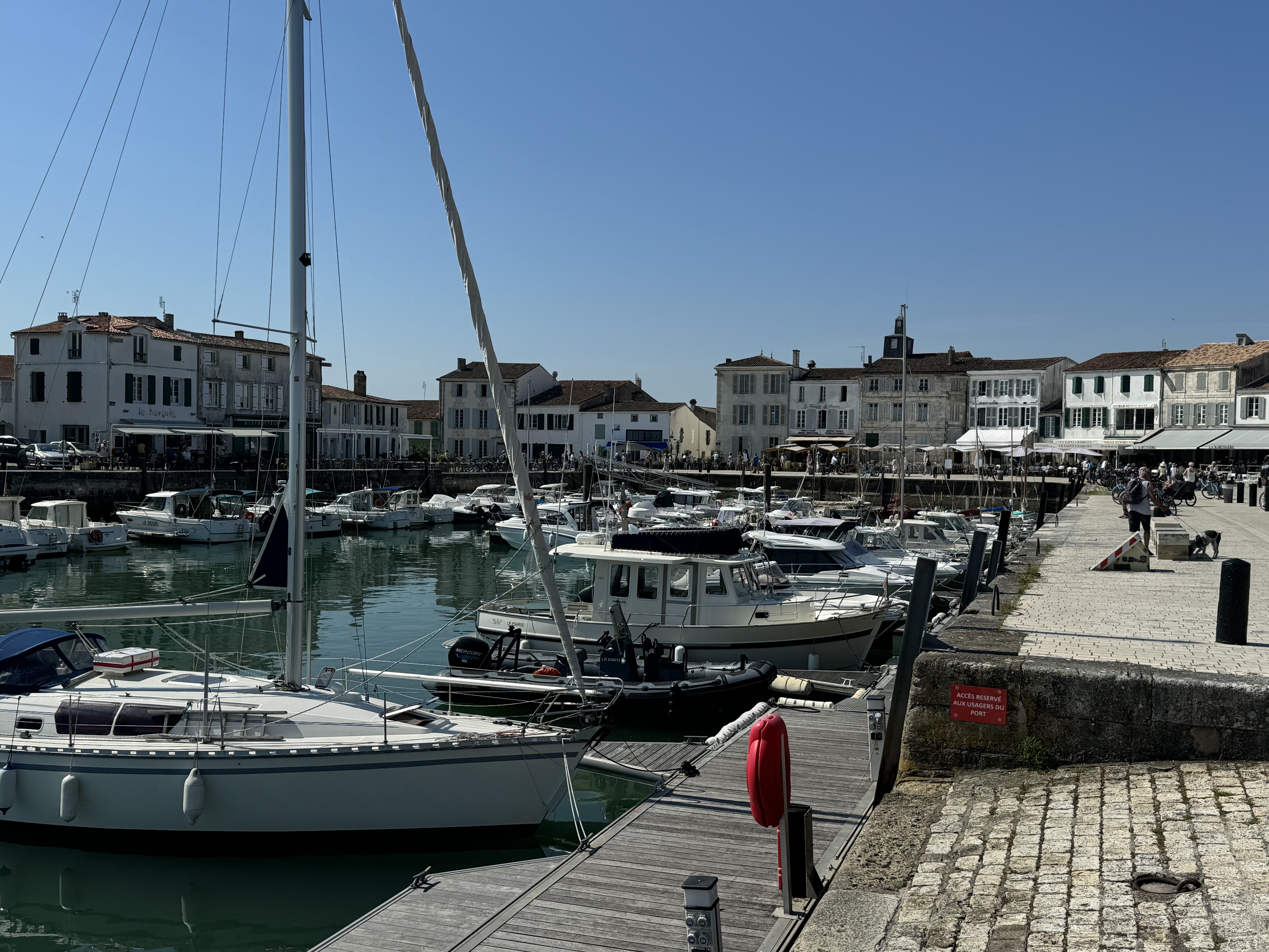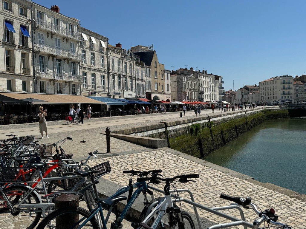 The following day we decided to leave the mainland and check out the Ile-de-Re, an island you reach by paying 16euros to travel across a bridge. Luckily, we had Jean with us with his credit card as the toll booth would not take cash and didn’t like our Aussie credit card at all. How rude! It is a very popular holiday spot for Parisians and EVERYONE rides bikes. It was quite busy and it wasn’t even true “holiday season”. It is only 30 kms long, so quite small. Our first stop was La Flotte, a small village with a pretty port and it was a good coffee stop.