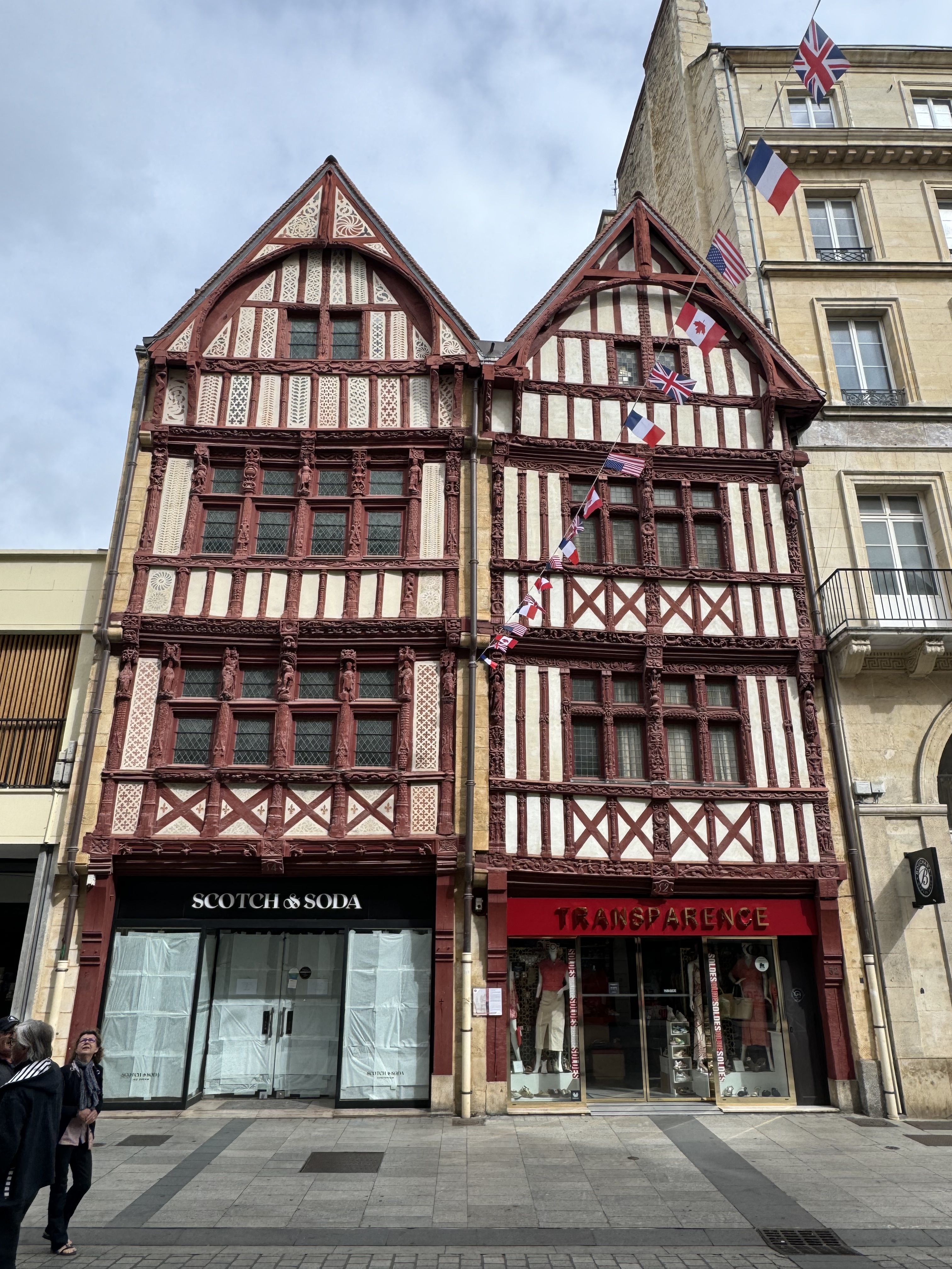 Place Saint Sauveur is the largest square in Caen. It was a good place to have a drink when the weather was sunny! Although we had seen many timbered houses in Vannes we couldn’t resist a photo of some more in Caen.