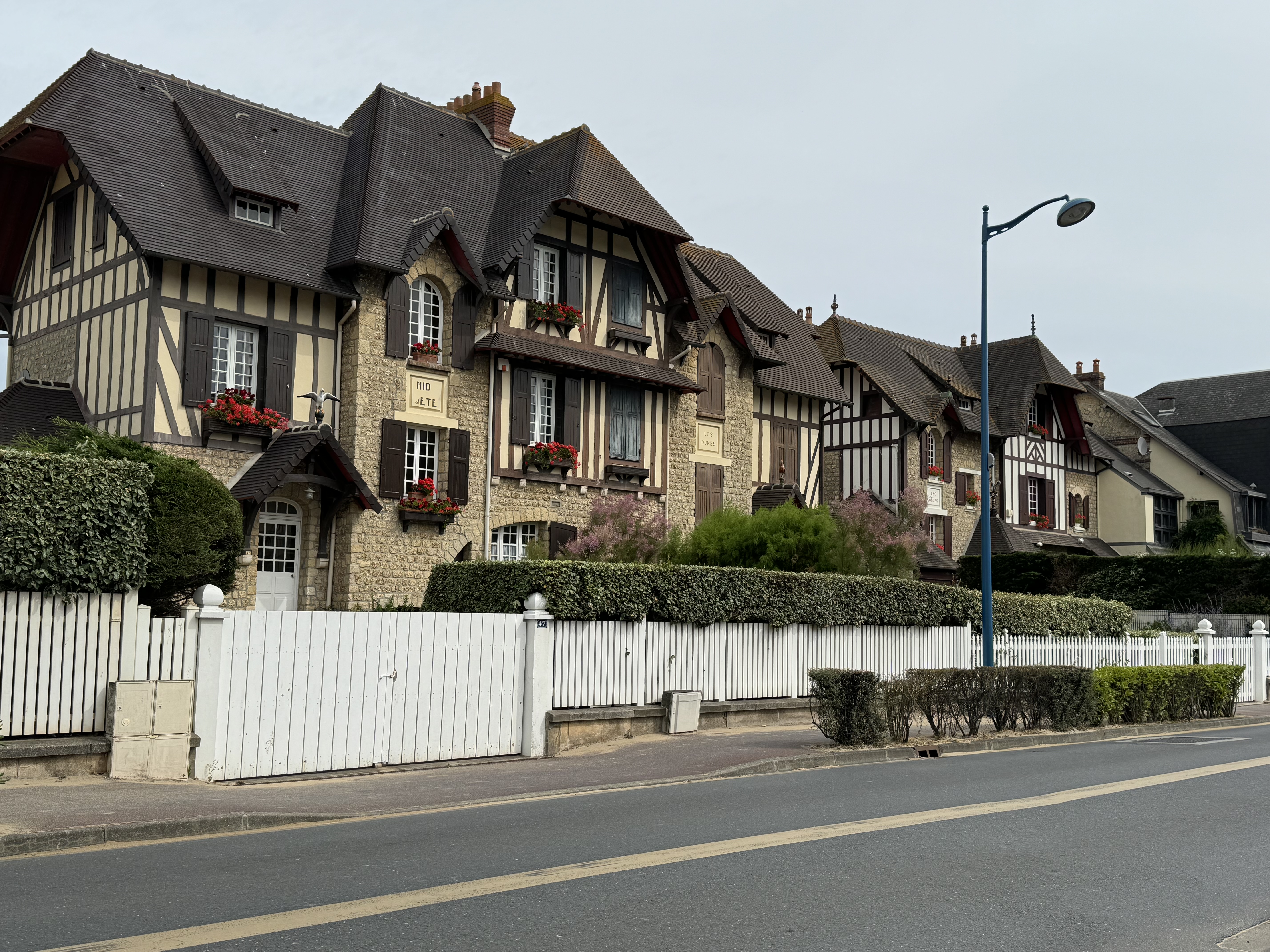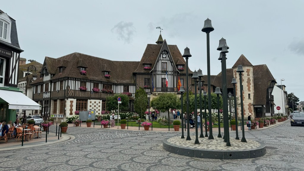 Next stop was Deauville, classified as a “fashionable Seaside Destination”. The beach is well known for its 450 colourful parasols, however it was not the day for a swim. The Town Hall was cute to admire while we had a coffee.