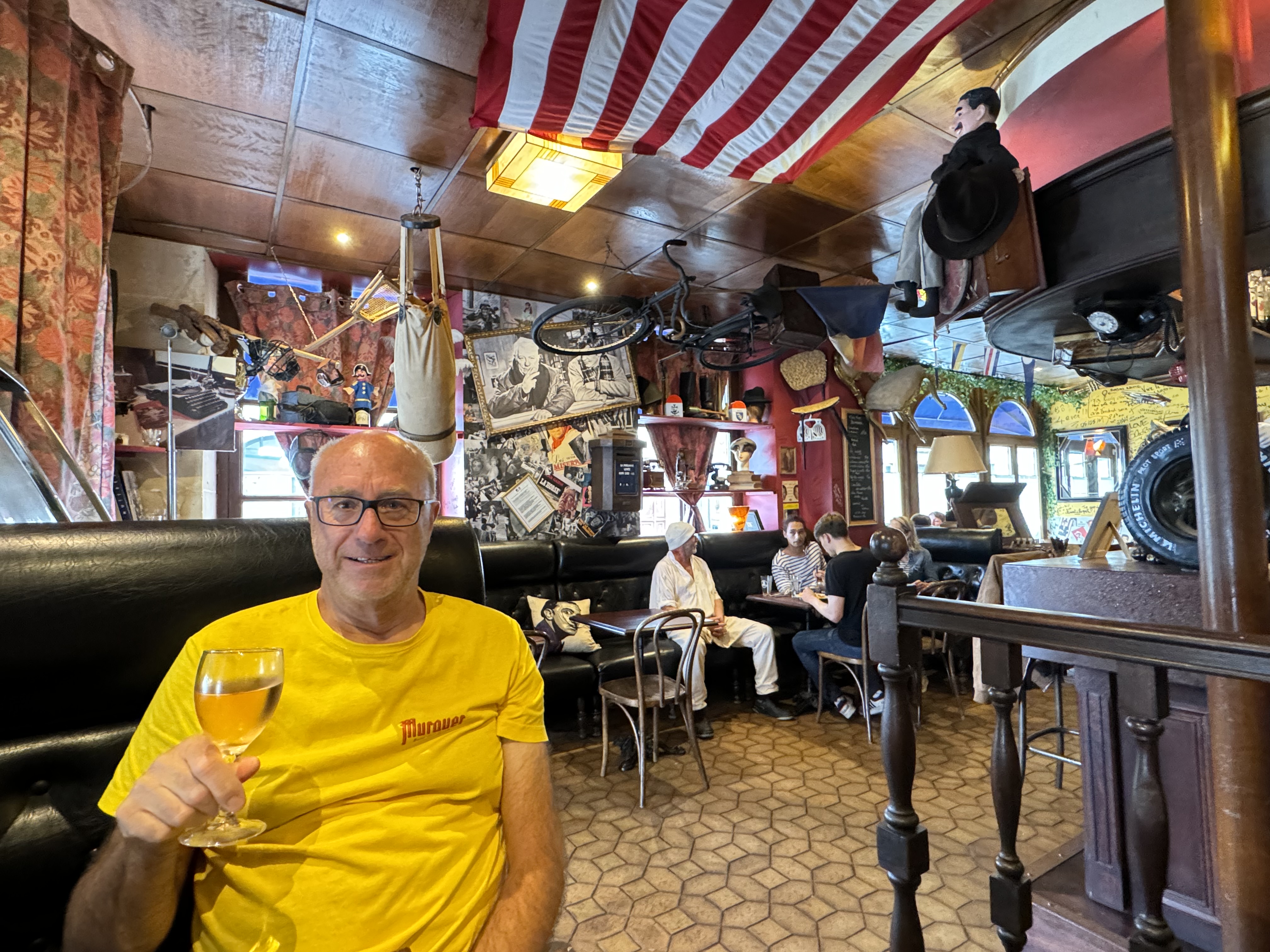 We then drove onto the large city of Le Havre. It is a port on the English Channel at the mouth of the River Seine. We expected to have a fish lunch but there were a few things that worked against us, On Mondays a lot of restaurants are closed and there is little fresh fish, so we opted for a roast duck leg with confit spuds, creme brulee and a Normandy apple tart. It was bloody delicious. the owner and waitress photo bombed our photo!