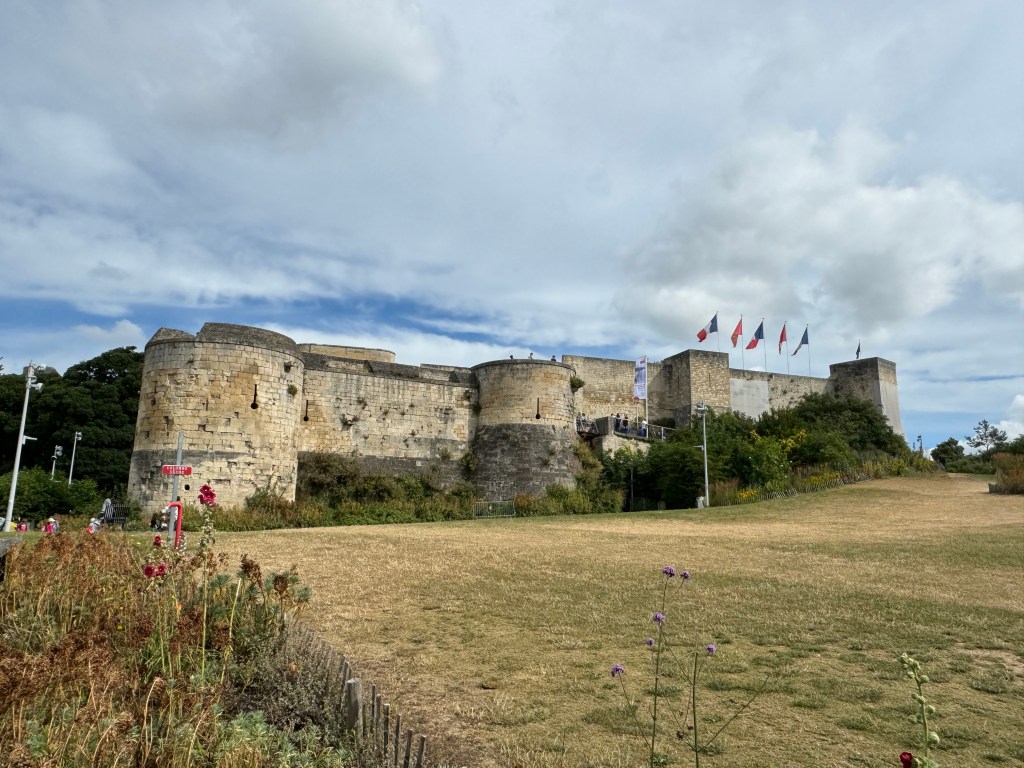 Caen has of course a Chateau and of course it was built by William around 1060. It is one of the oldest and largest in Europe. We thought it was great when we read about the “free entry” but once inside we knew why! A restoration process is underway, and it was a complete mess but the view of the house roof tops from the rampart walls was okay!
