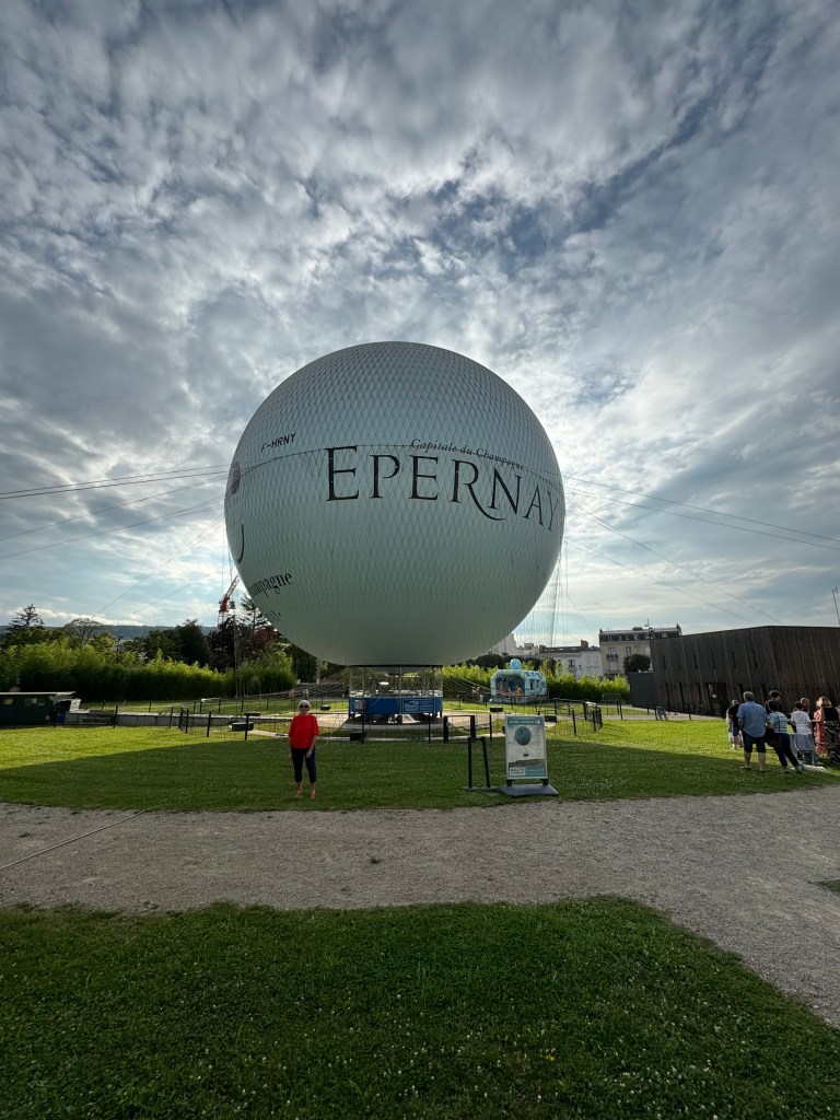 We discovered that there was another event happening in Epernay that we thought we should check out. It was called the Ballon Soirée. (Drinks at the balloon). We have seen the Ballon Captif -Epernay from our terrace numerous times. It is a balloon that rises 150 meters to view the surrounding vineyards. The event was free , however we found it not very exciting and did not want to pay 20 euros for ONE glass of champers, so we opted to go to a local wine bar and had a lovely glass of rose instead!