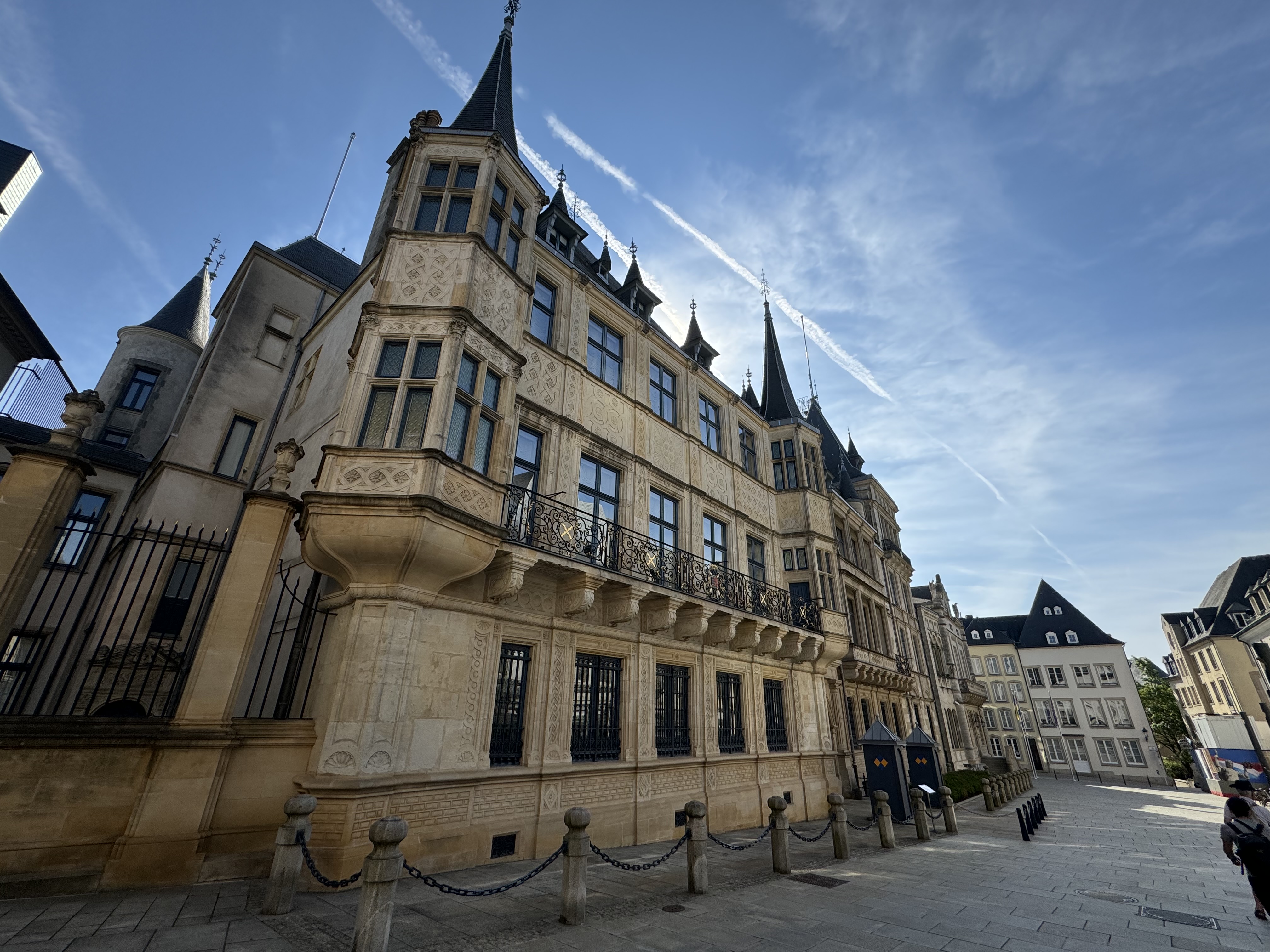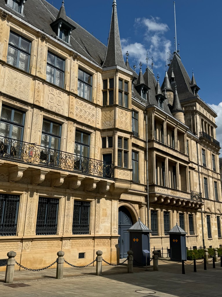 We then ascended back to the Village Haute and continued our tour. The Grand Ducal Palace is where the Grand Duke of Luxembourg works, not a bad office space we thought. A part of the main building remains from the 1700s. A huge renovation work began in 1895. It was seized by the German occupying forces in WW11 and converted into a concert hall and tavern. It certainly is a magnificent building.