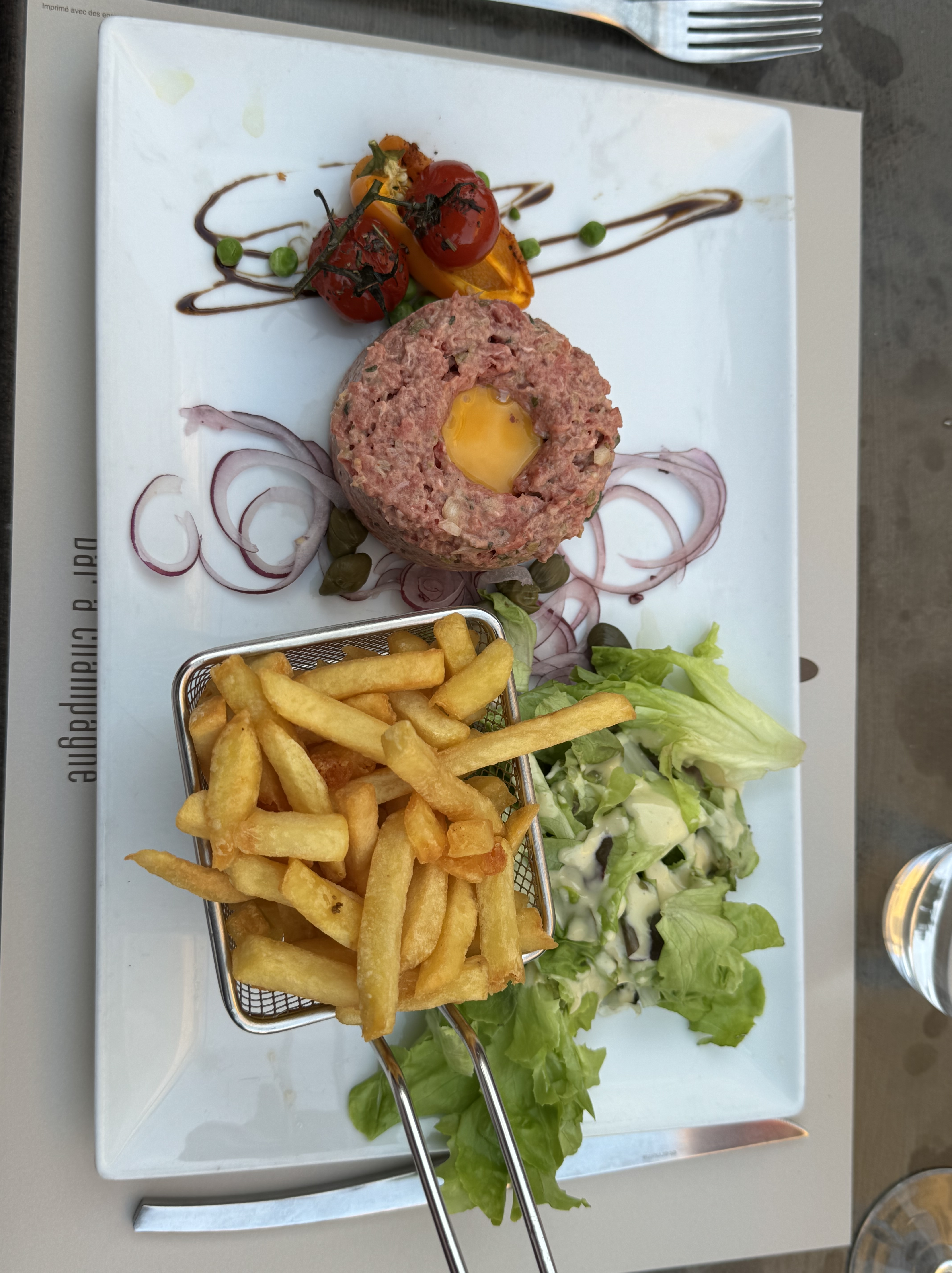 Our meal was sensational. Greg enjoyed his Steak Tartare and Rhonda’s turbot with Champagne sauce was sensational. It was a great night swapping travel stories.