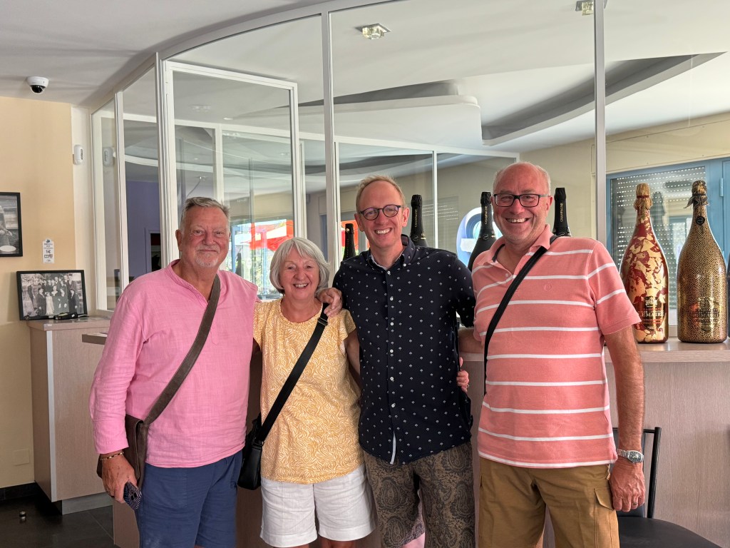 We then headed back to Epernay to the Moët and Chandon Champagne House ( the owner of Dom Perignon) to take one more photo of Dom to finish our “Birth of Champagne”tour. We spent the afternoon in our lovely cool apartment with its brand new air conditioning ( another story in that) whilst the outside temperature rose to 37 degrees!