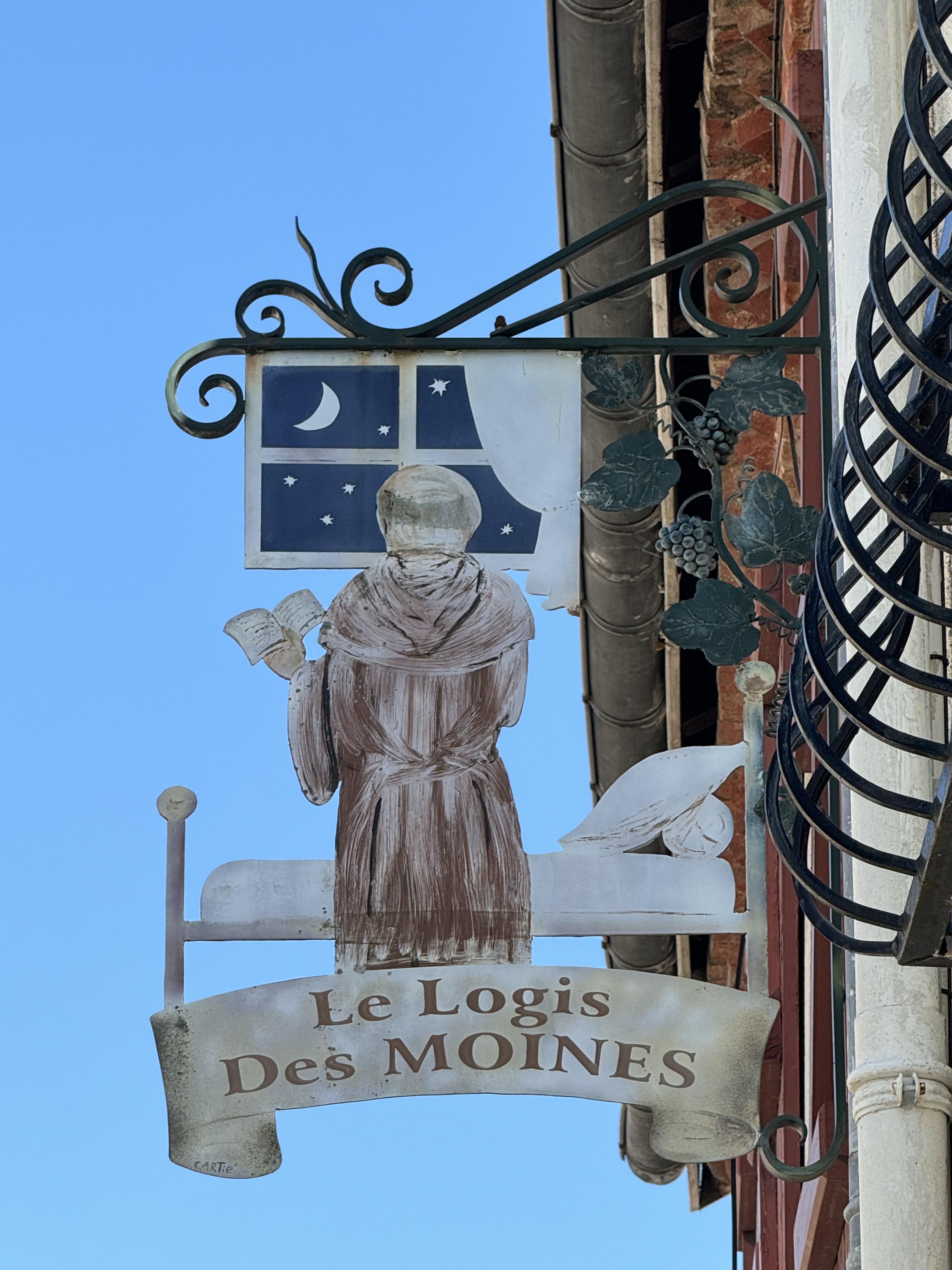 The village is also known for its old wrought iron signs hanging from the houses.