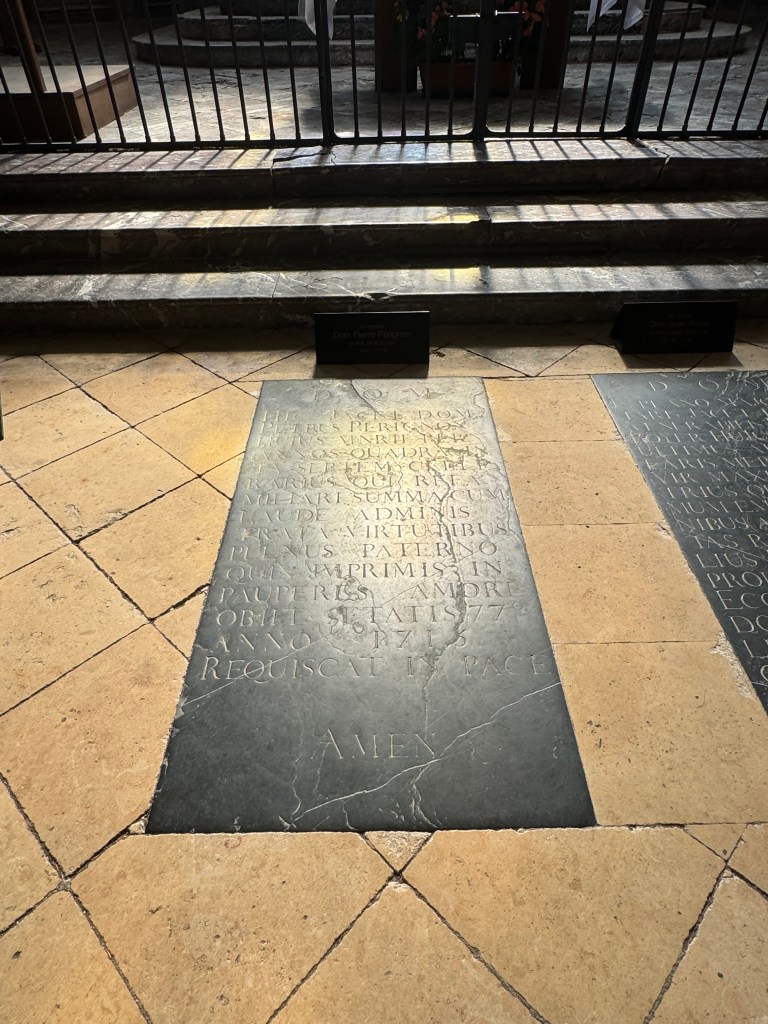 His wine was served in the Palace of Versailles and he was a visionary who developed revolutionary grape growing and wine making techniques. To Dom Perignon, we say a HUGE THANK YOU. Of course we needed to visit the Abby Church of Saint-Sindulphe in the village so that Rhonda could say a personal thank you to him.