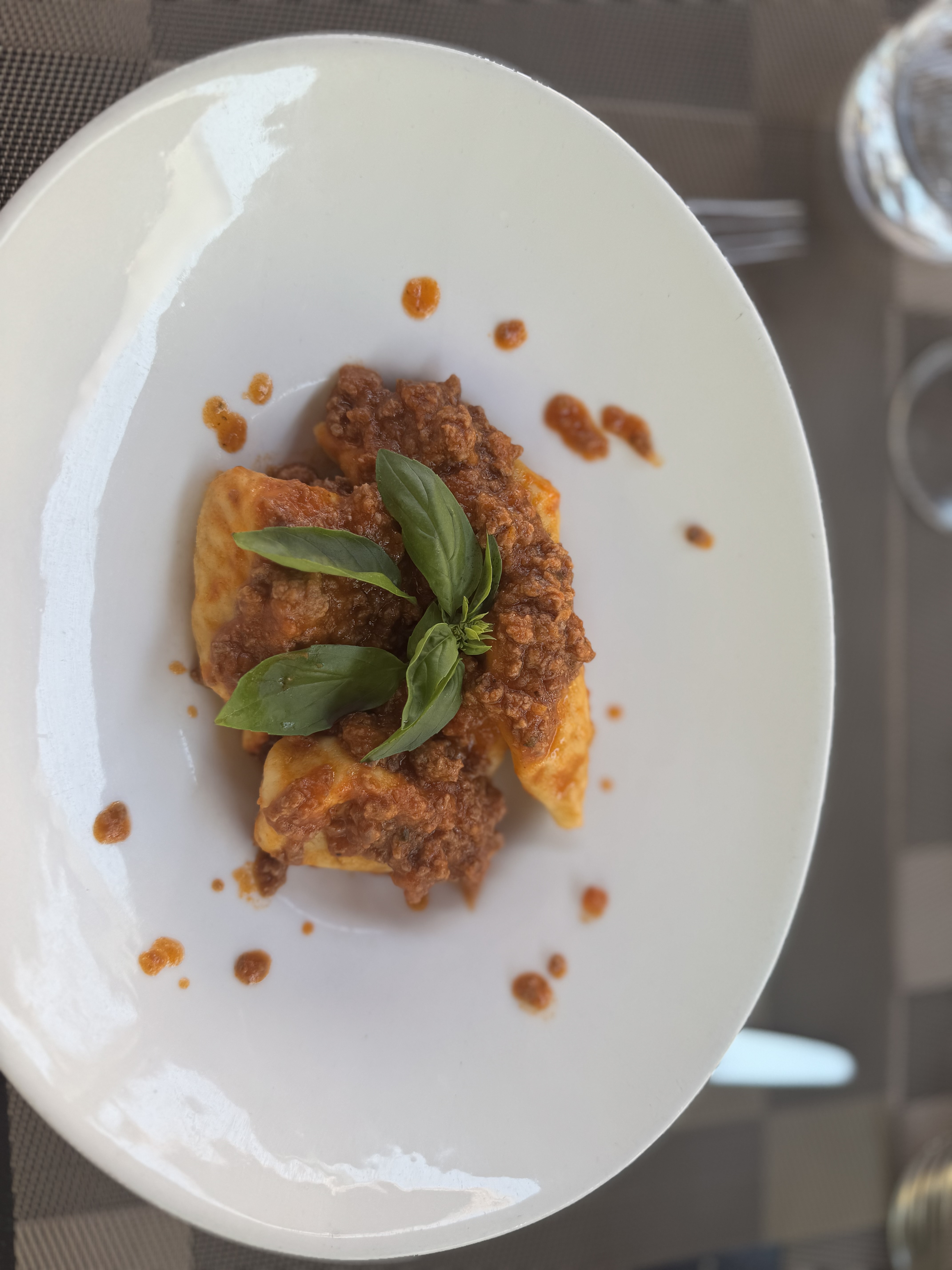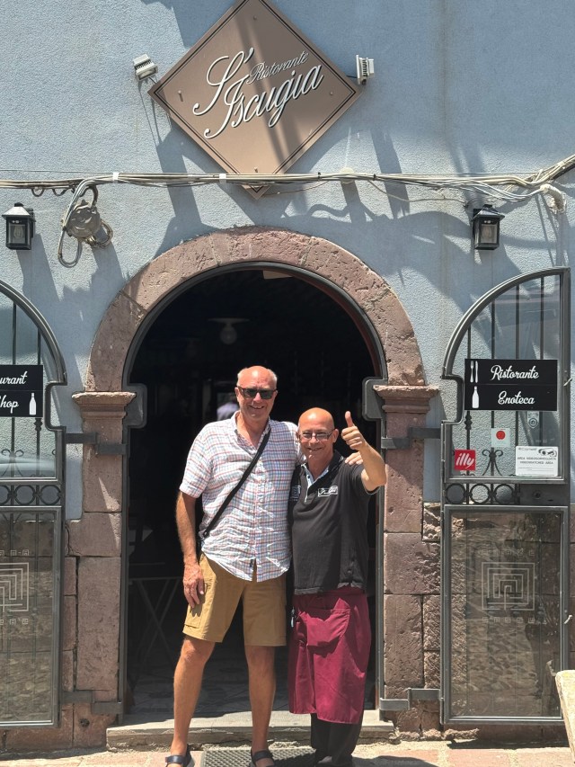 We decided to “do lunch” in Bosa and ate at S’Iscugia to try some typical Sardinian food. Entree was Pandanas alla bosana which translated to pasta bag with veges, it was yum! Rhonda’s culurgiones nal ragu , a typical Sardinian pasta ( potato and cheese ravioli with a ragu sauce) was yum and Greg’s tagliolino verde con scampi, fresh green pasta with scampi was lovely too although Greg didn’t like having to peel the scampi himself! A glass of Sardinian rose just added to a lovely meal.