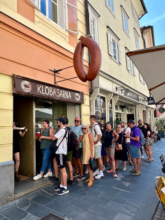 For lunch we decided on a typical Slovenian sausage called the Carniolan. We knew it had to be good by the long queue of people lining up at the door……and it was.
