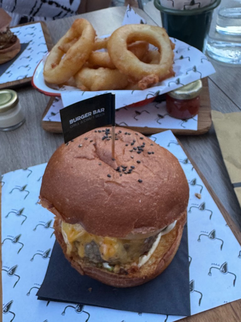 We decided to eat out on our first night and had eaten enough pasta and pizza over the last few weeks so we decided on a burger. We chose the very aptly named “Pops”. It was a great burger and the onion rings and fries topped off a great meal.