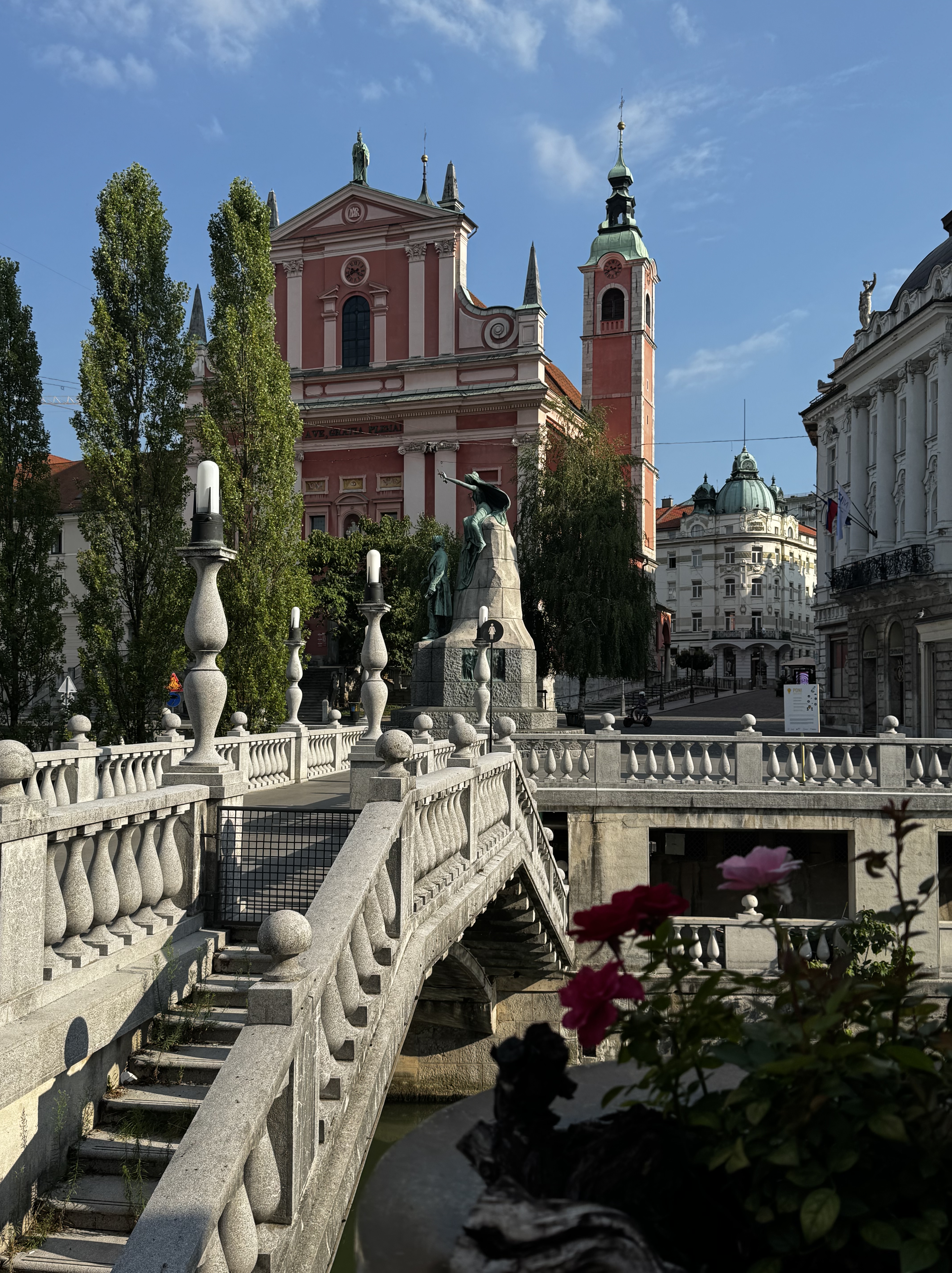 The main square, Preseren Square, sits at a medieval crossroad and the Franciscan Monastery and Church dates back to the 17th century.