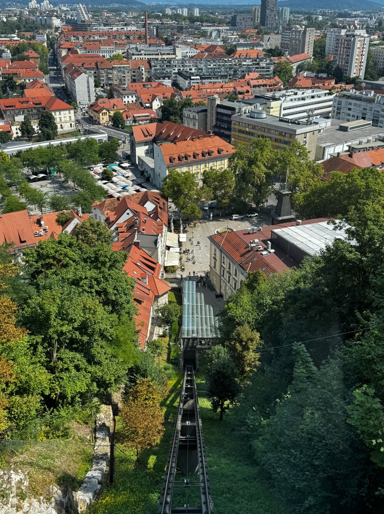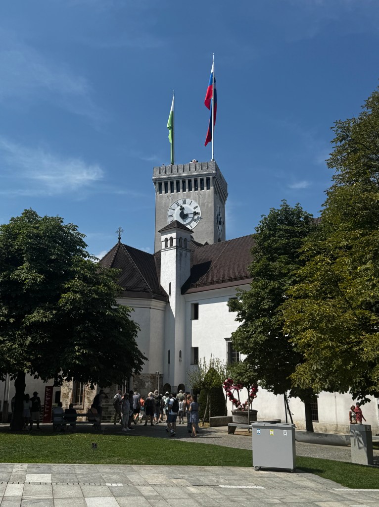 The Ljubljana Castle is a key landmark of the city, and accessible by funicular. Most of the buildings date back to the 16th century. The castles watchtower was added in the 19th century. We could have walked the 95 steps via the staircase to check out the view but we opted to take a photo instead. The chapel below dates back to 1489 and is the oldest surviving remnants of the castle.