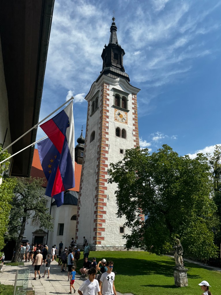 The next day we decided to take Harley for a drive to Lake Bled, a beautiful blue/green lake in the Julien Alps. Bled Island sits proudly in the middle and is accessible by the traditional wooden Pletna Boats. Their origins date back to 1590. There are only 23 of these boats on the lake and very popular for the tourists.
