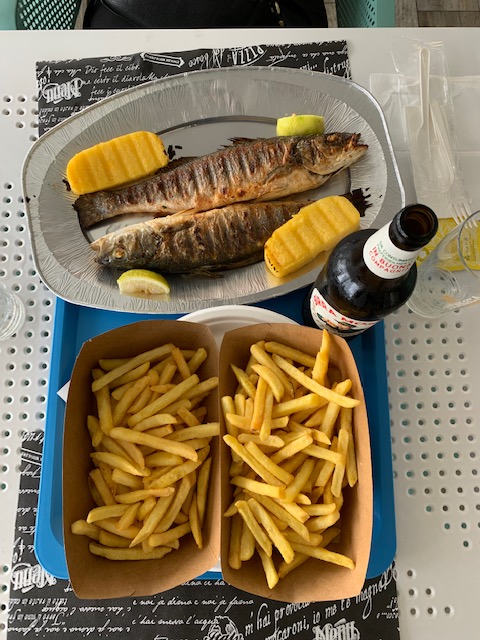 After we had walked through the town we went down to the Lake and we were more impressed with that. It was very pretty and we found a spot for a hot dog, beer and aperol spritz to enjoy the beautiful view.
